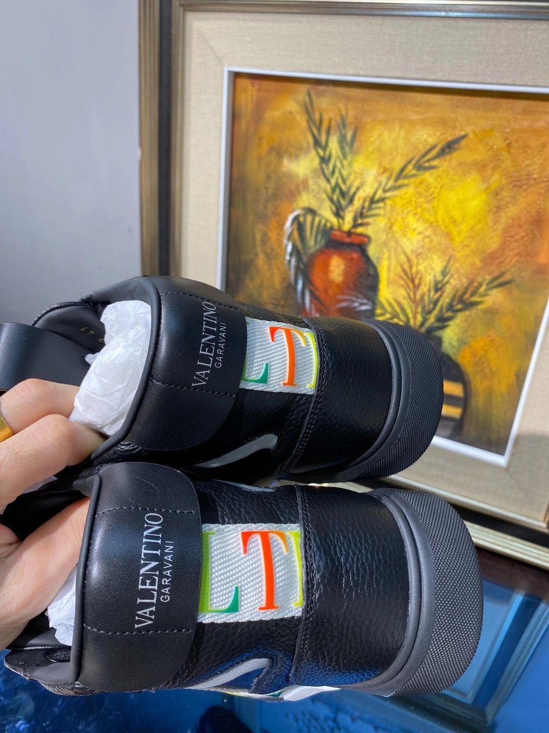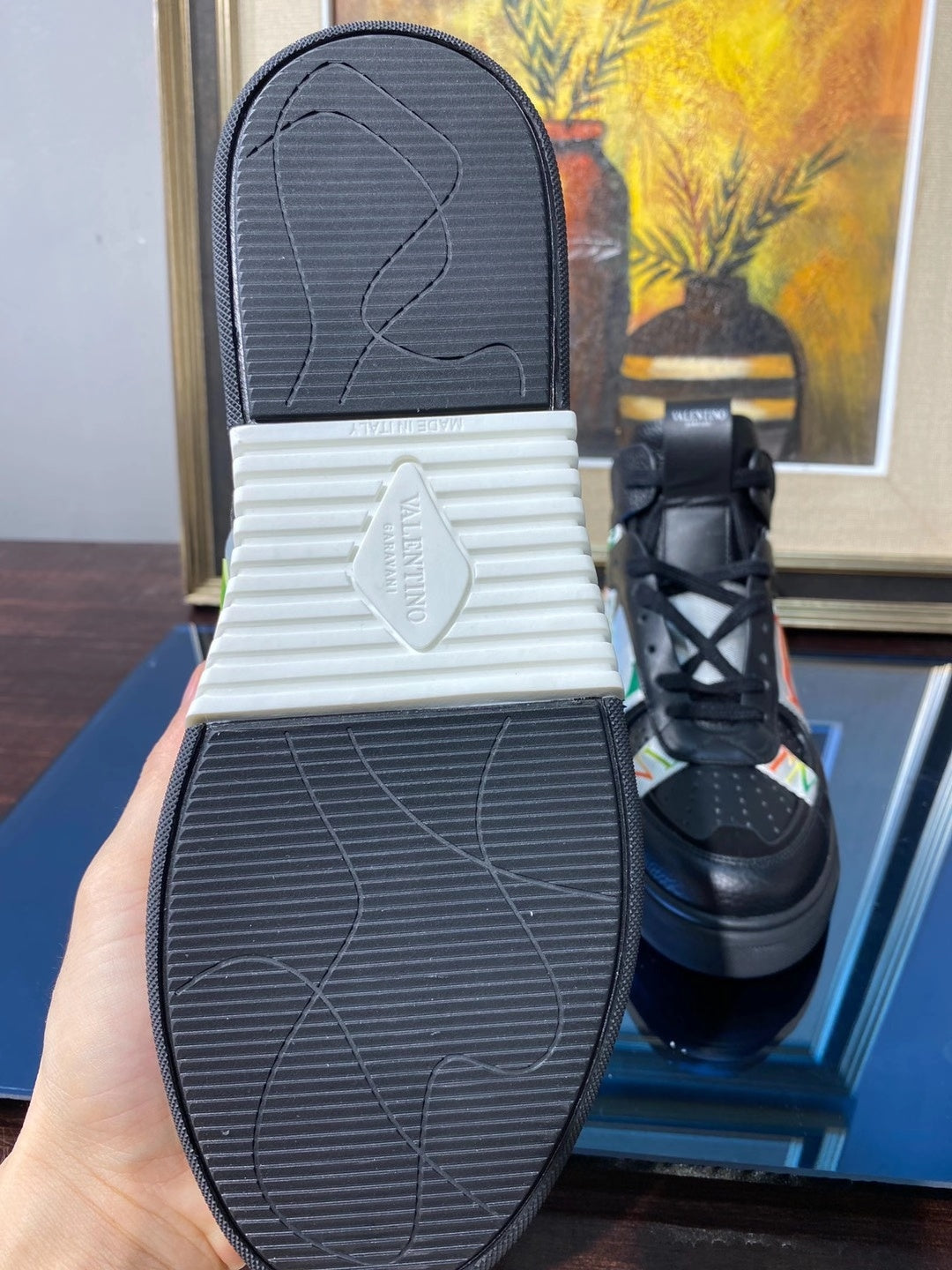 Valenti High Top VL7N Black Calfskin Multicolor Canvas 993748