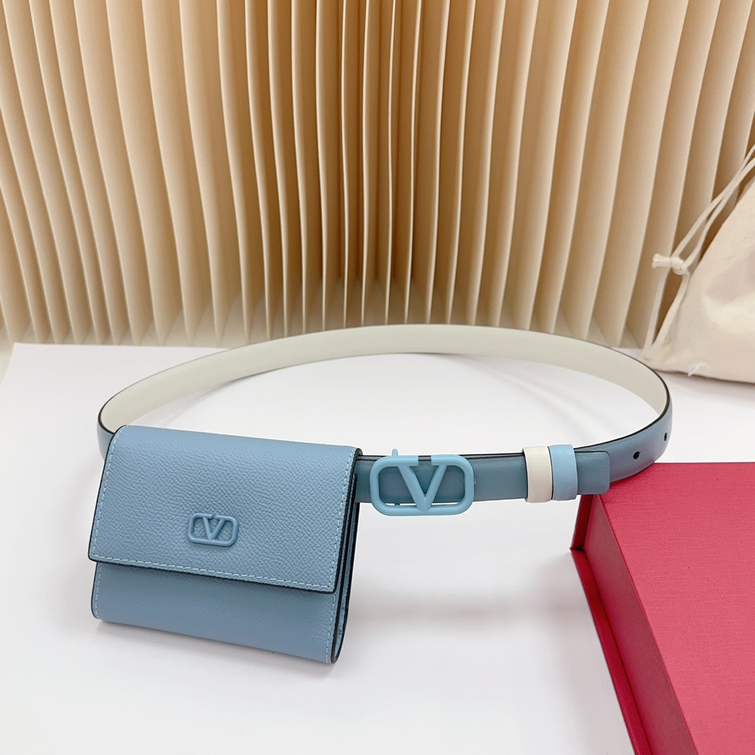 valenti sky blue 20mm belt with mini calfskin bag