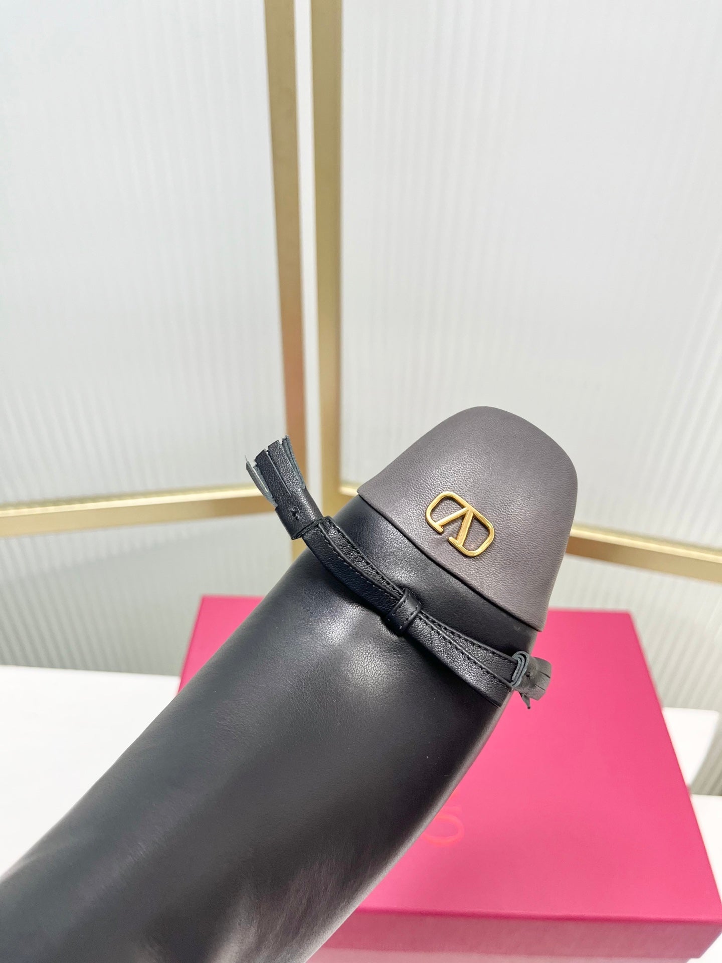 Valentino 2025 Bow Square Toe Zipper Ankle Boot Black Cowhide 549736