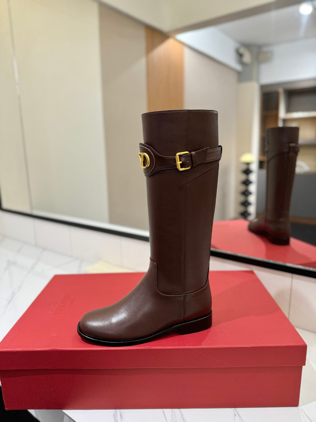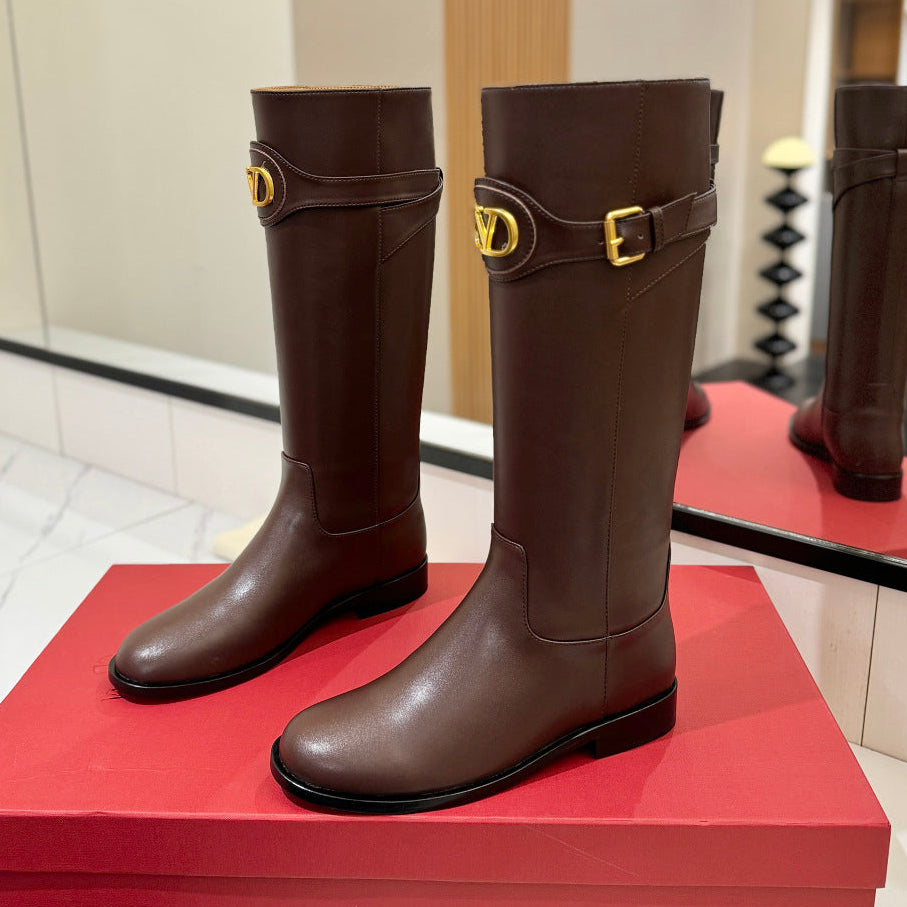 Valentino 25 Garavani Vlogo Signature Round Toe Brown Chocolate Calfskin Boots 505542