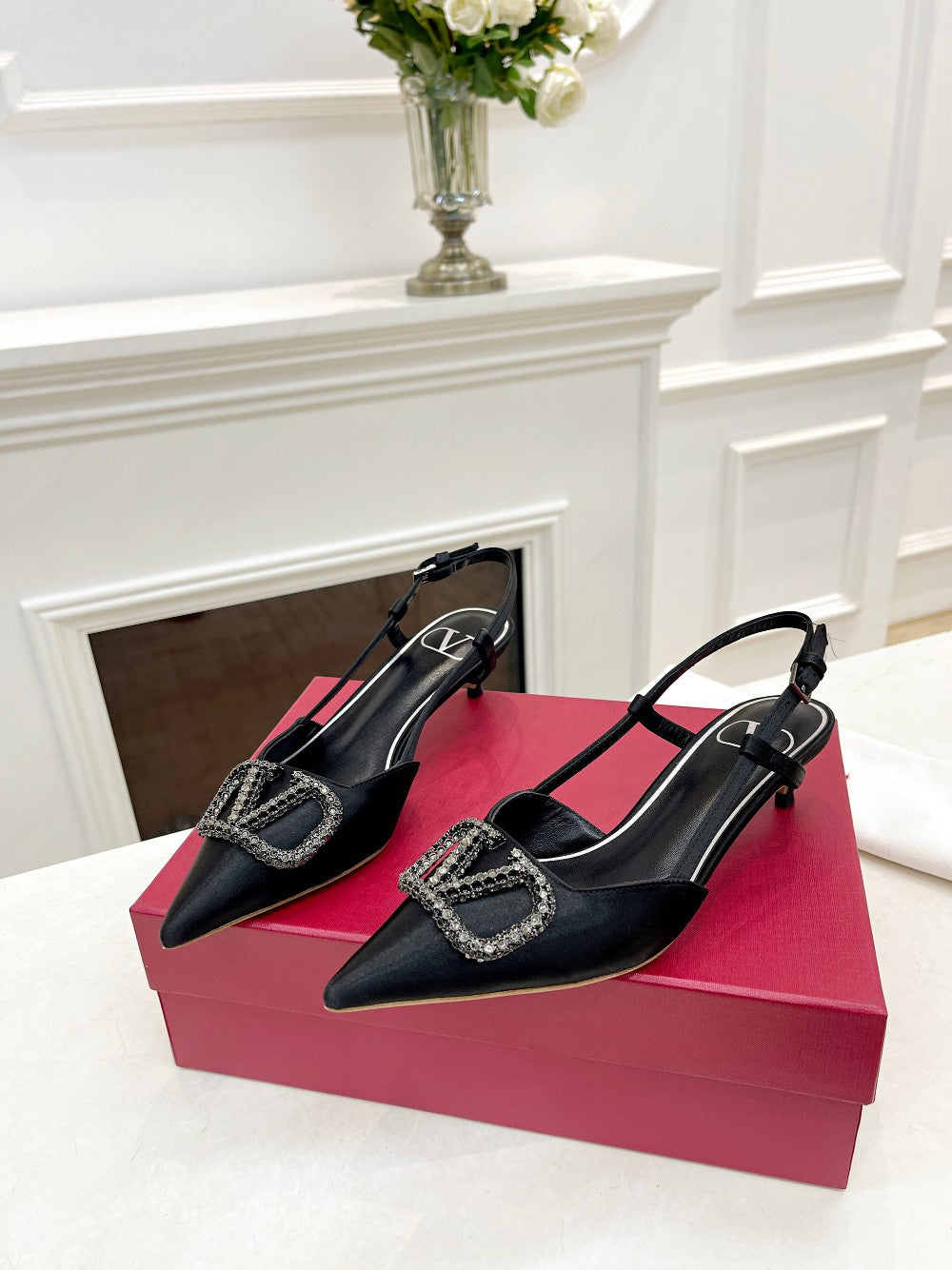 Valentino 25 Vlogo Signature Slingback Pumps Black Silk 239505