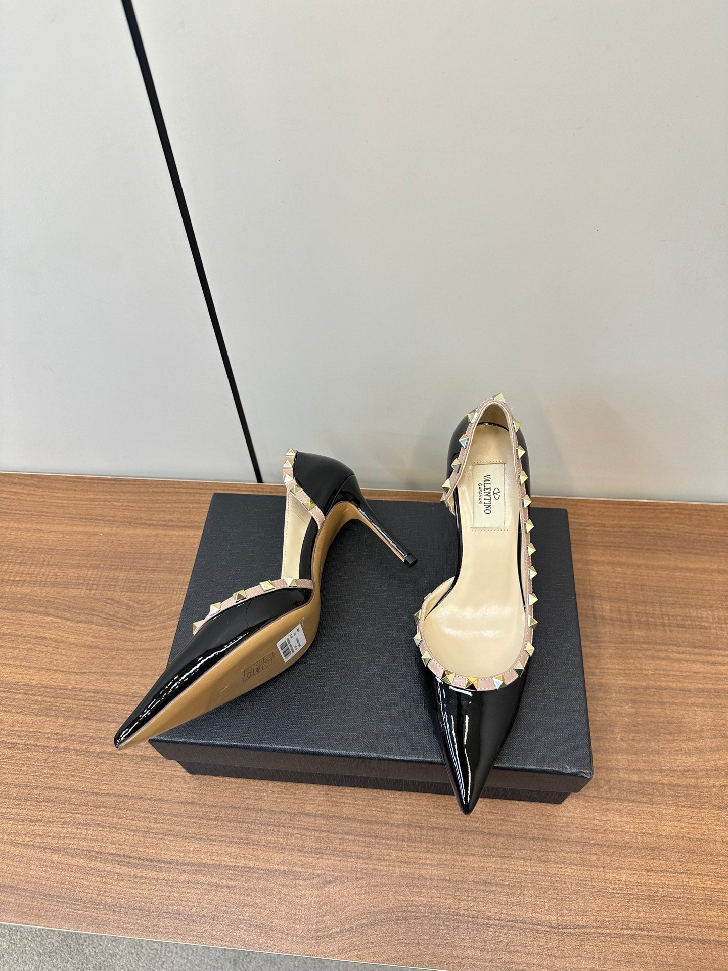 Valentino Black Rockstud D'Orsay Pumps 95mm Cowhide 989892