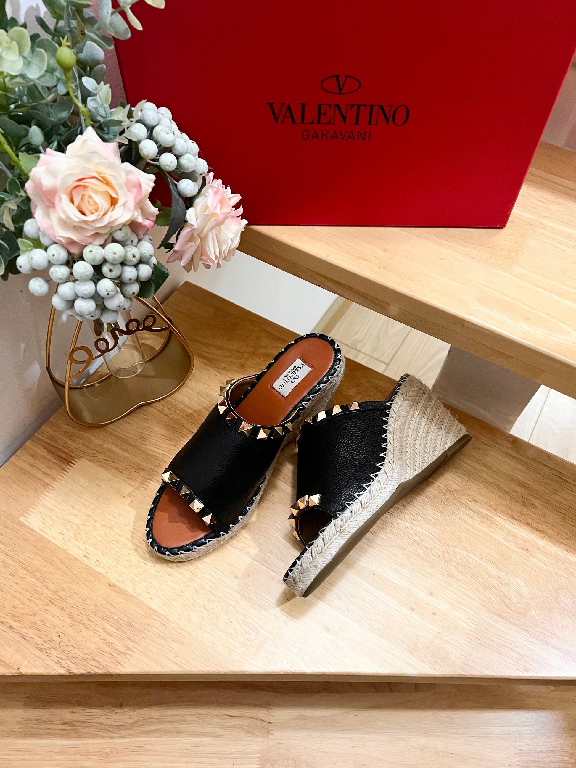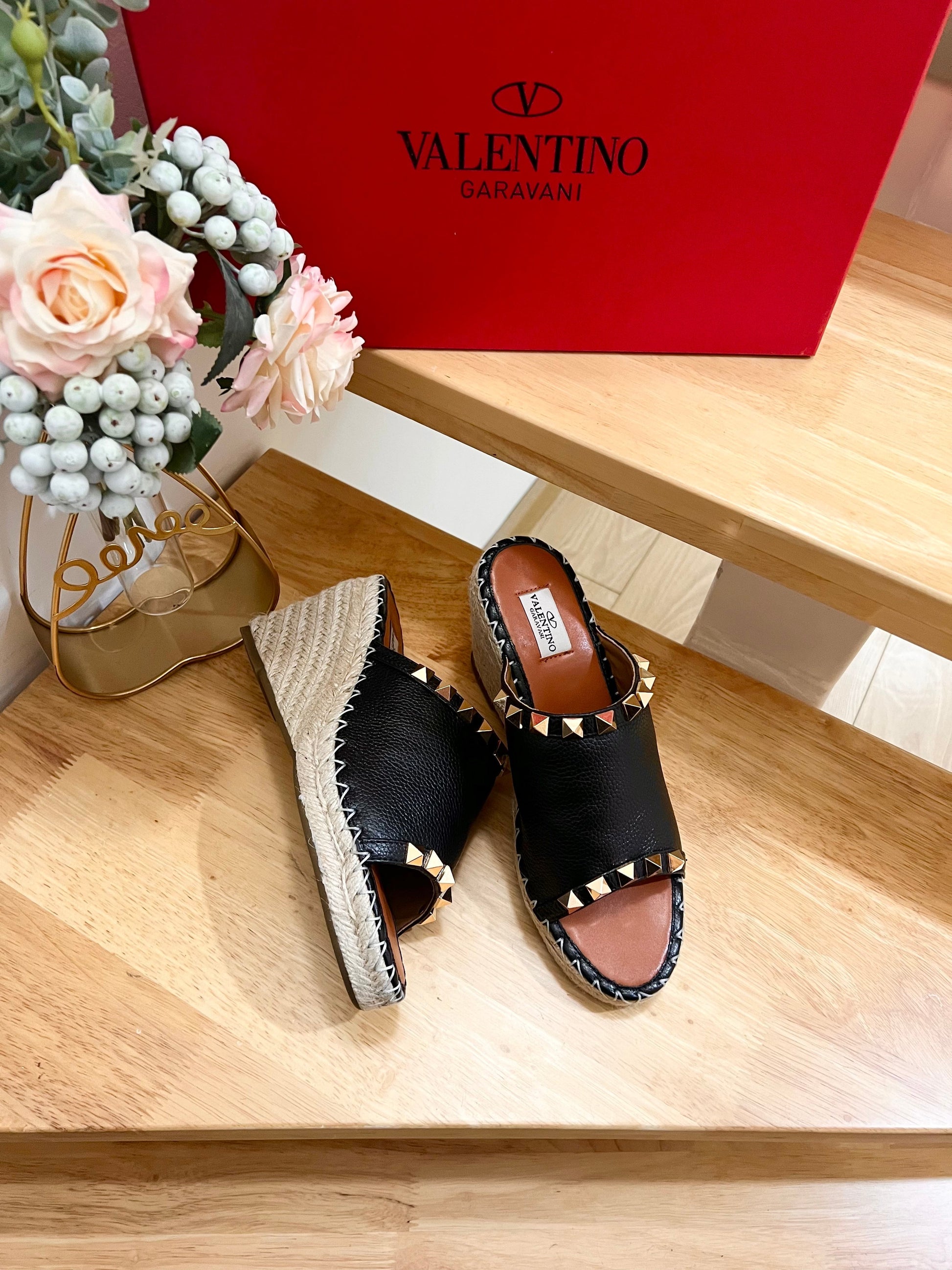 Valentino Mule Wedge Black Leather 240592