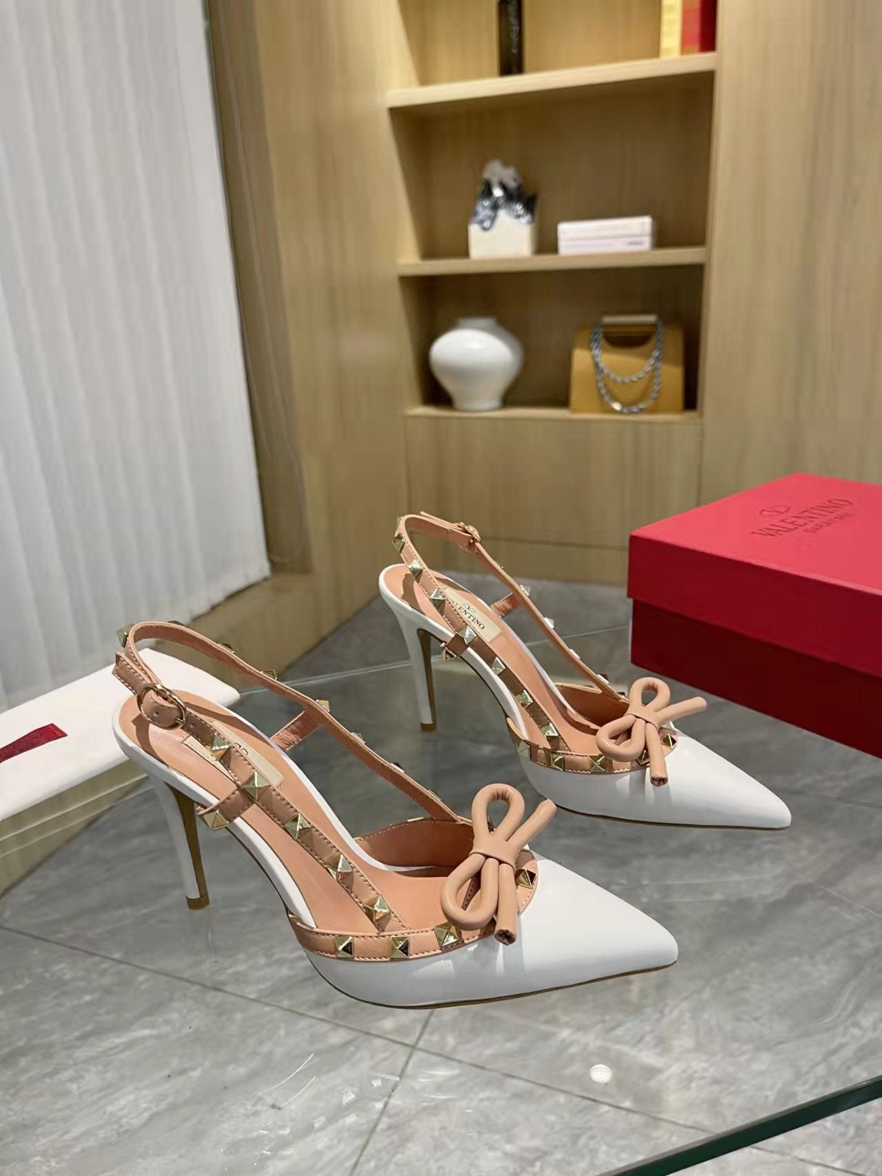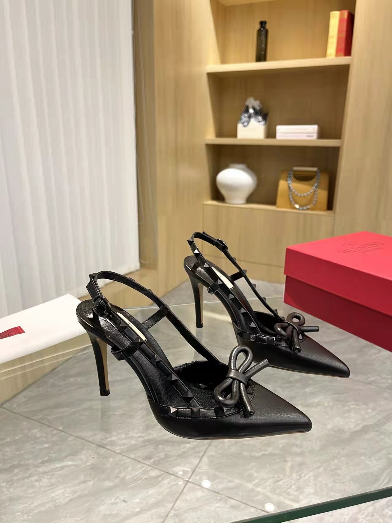 Valentino Rockstud Bow Slingback Pumps 95mm Sheepskin