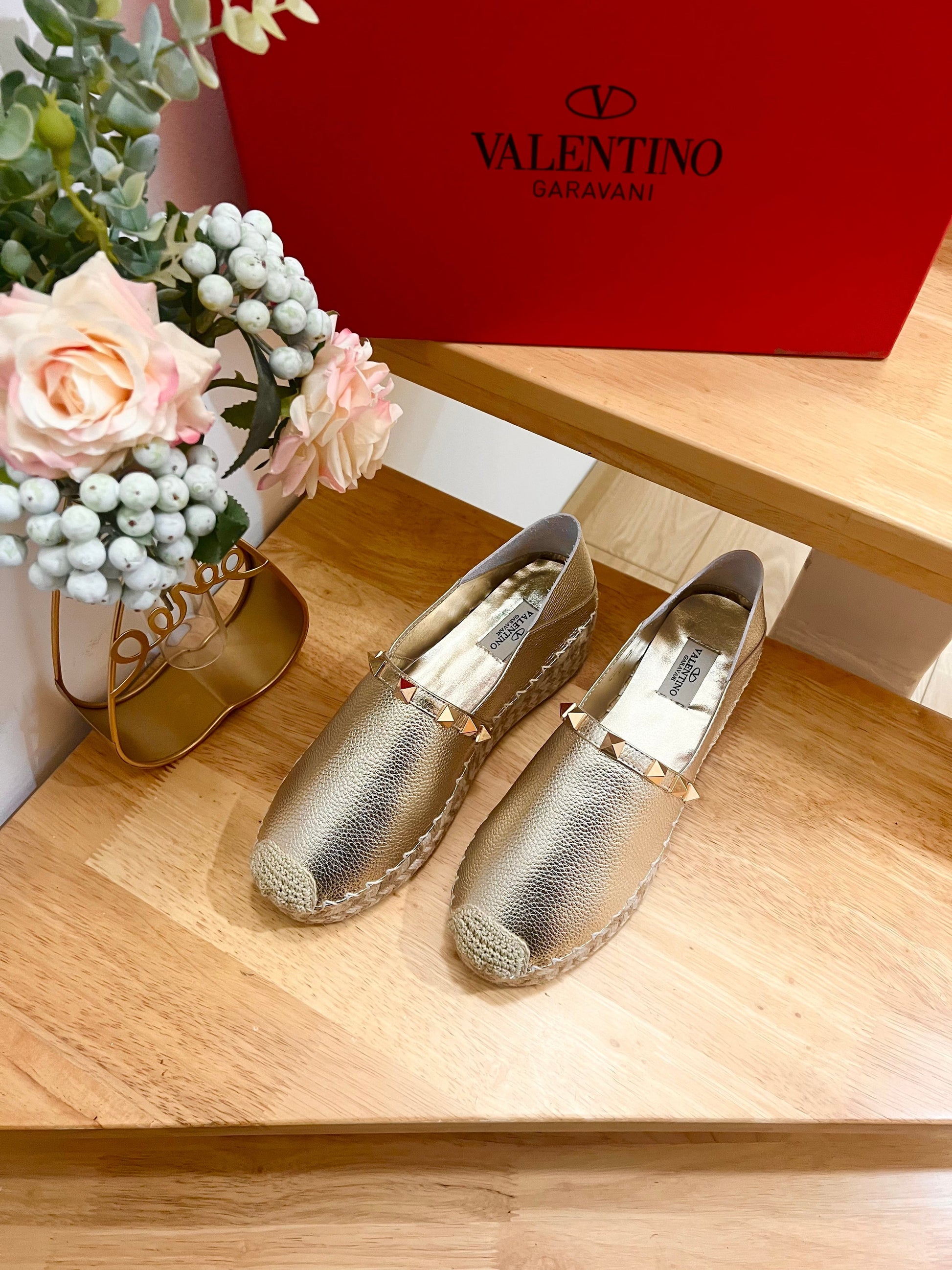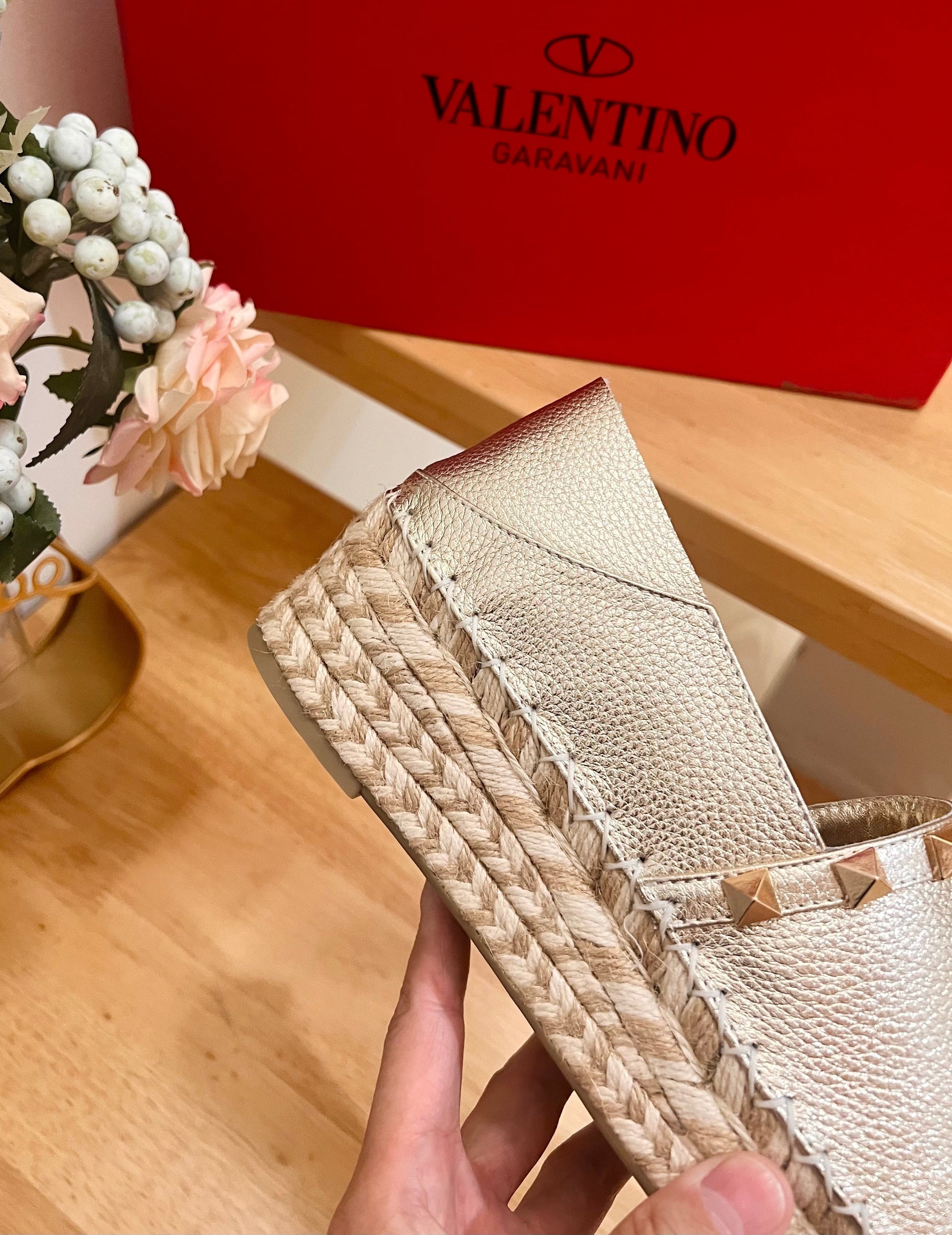 Valentino Rockstud Embellished Slip On Espadrille Silver Cowhide 240571