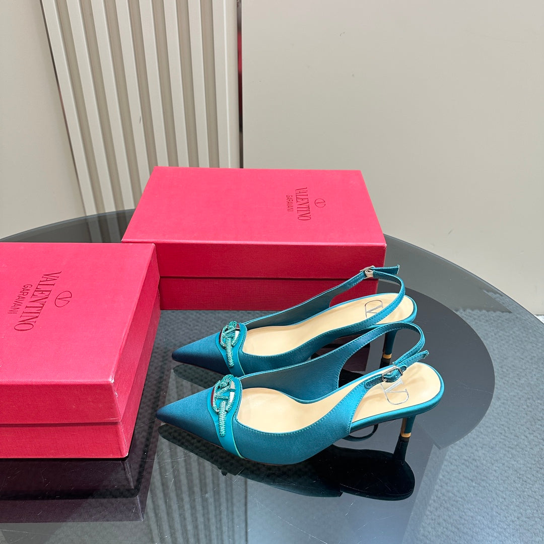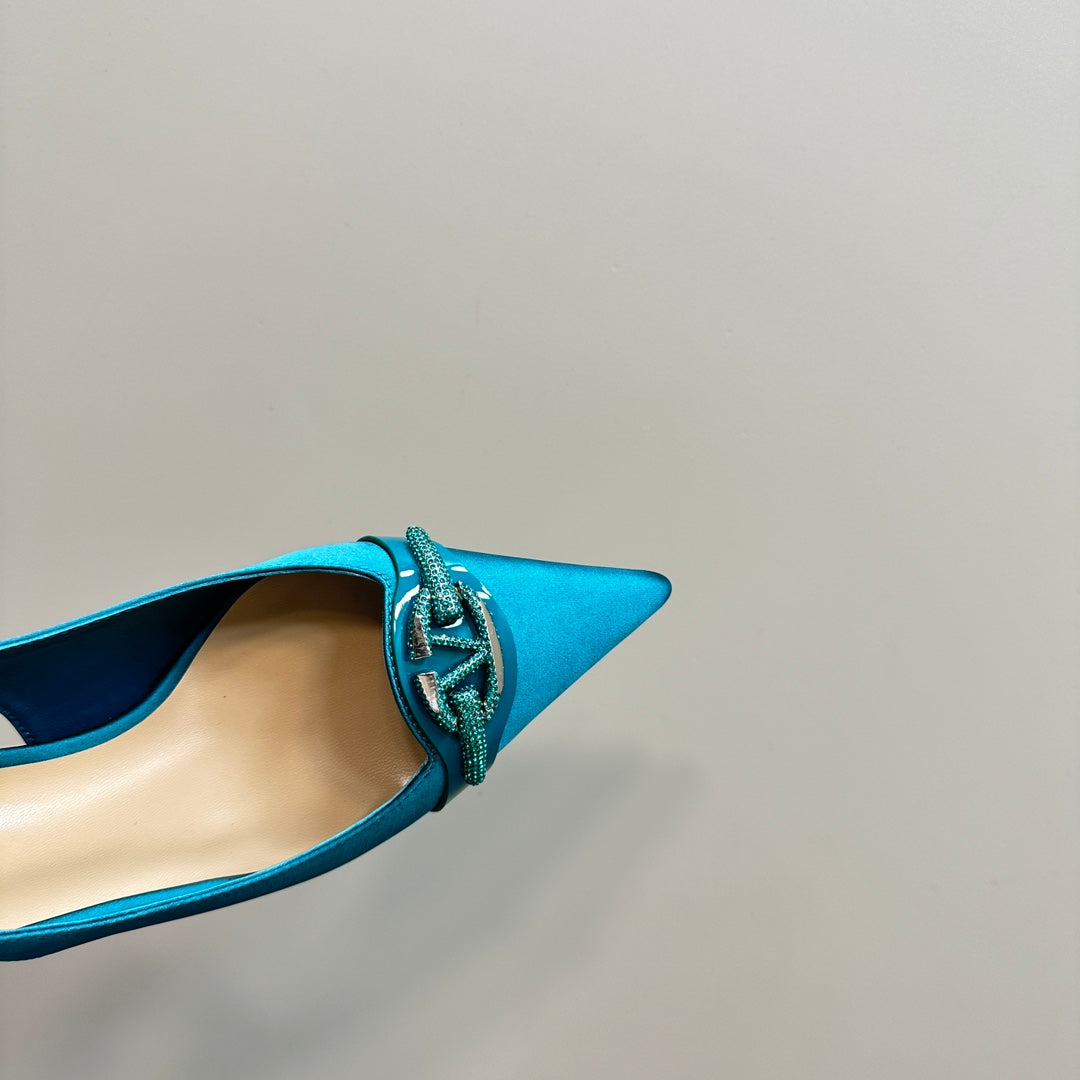 Valentino Slingback Pump 65mm In Duck Neck Blue Mix Beige Lambskin 999015