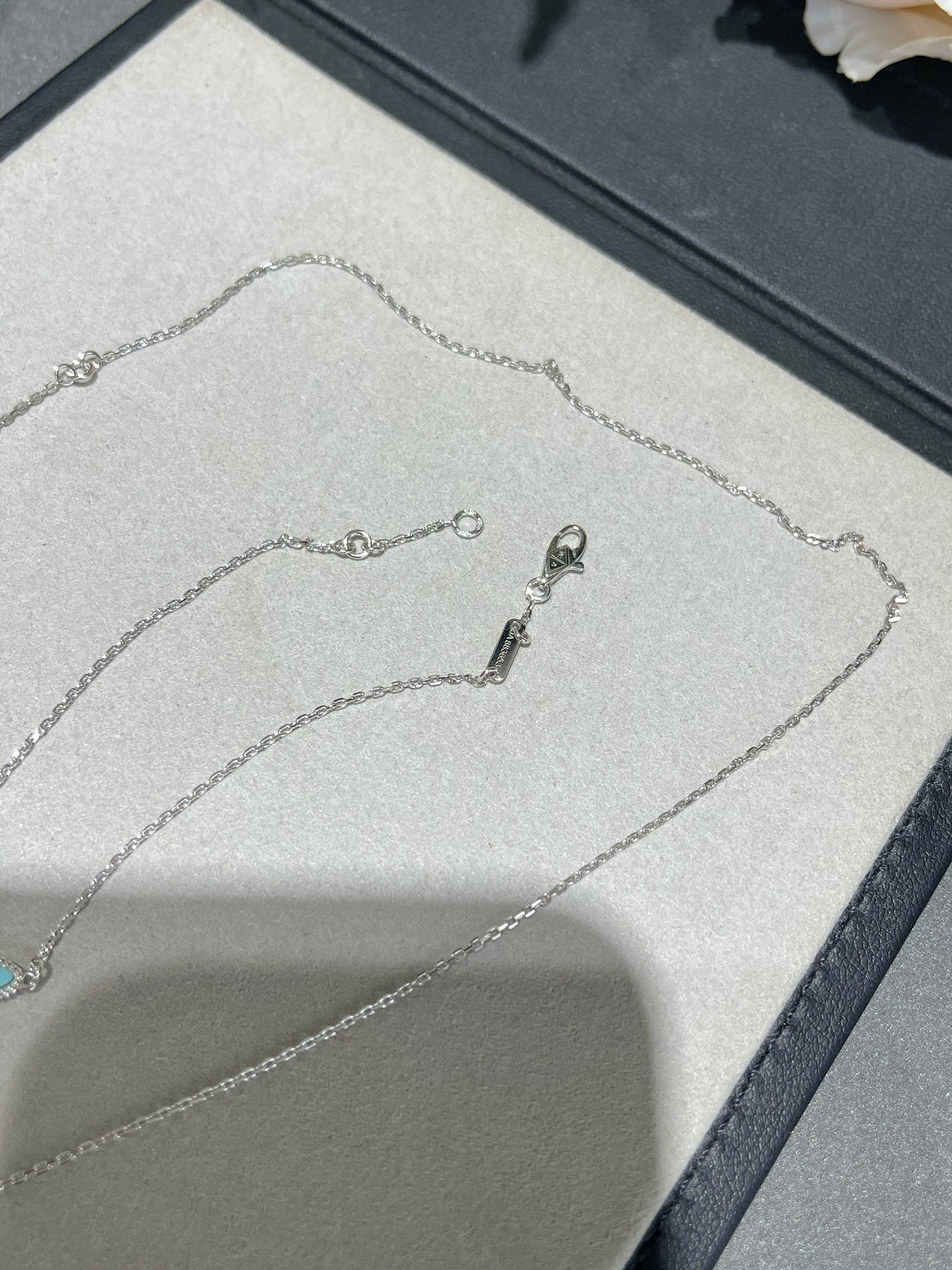 VCA Mini Butterfly Blue Ceramic Necklace Sliver