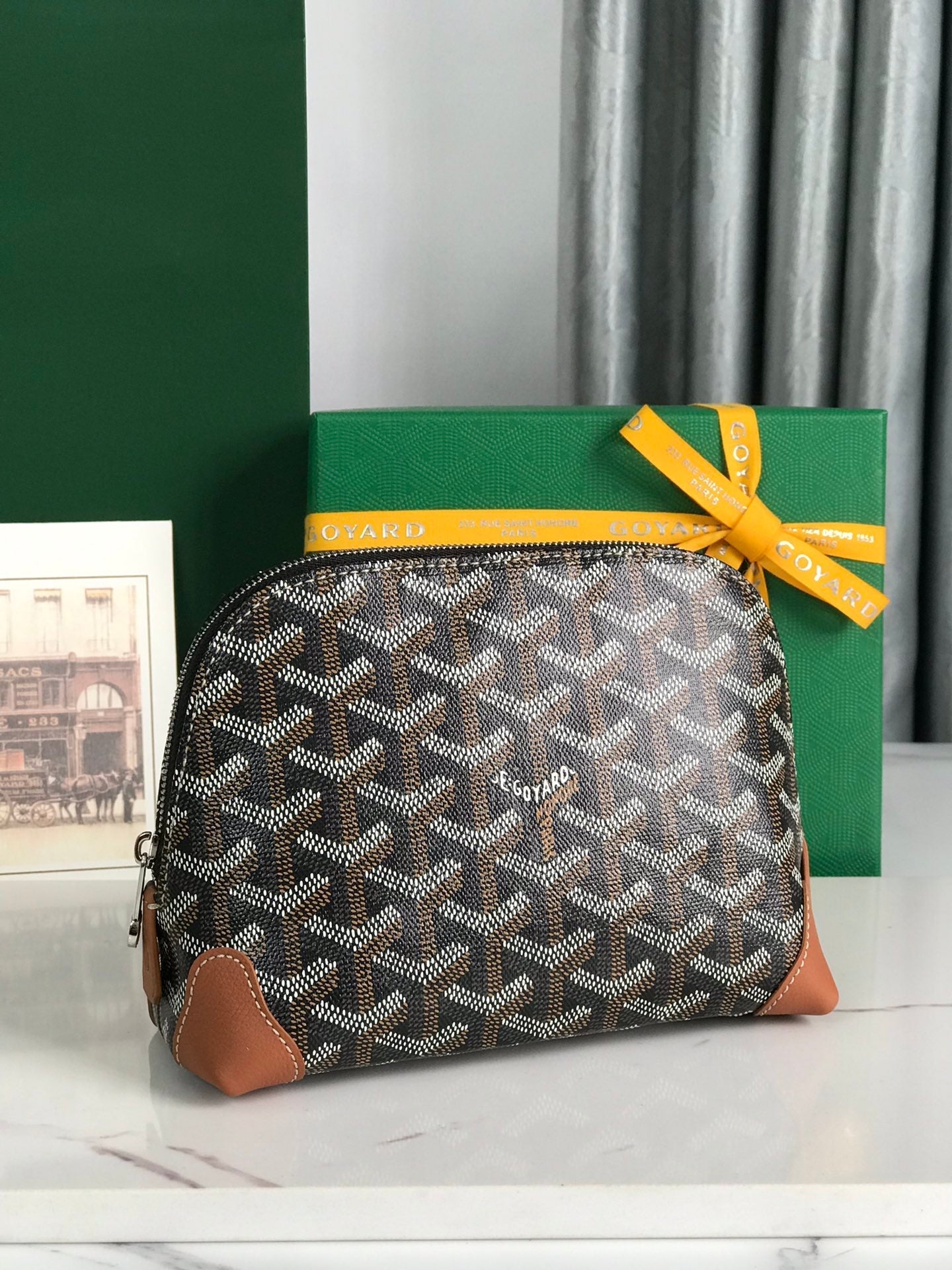 VENDÔME COSMETIC POUCH 17 IN BLACK GOYARDINE CANVAS AND TAN CALFSKIN TRIM