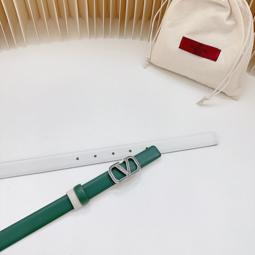 Vlogo Buckle Water Wave Silver Copper Glossy Dark Green White Leather 20mm Belt