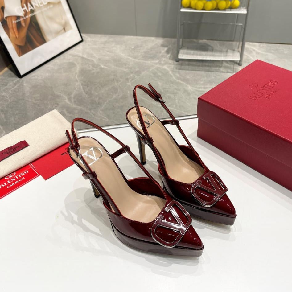 vlogo signature burgundy beige calfskin slingback platform pump 120mm