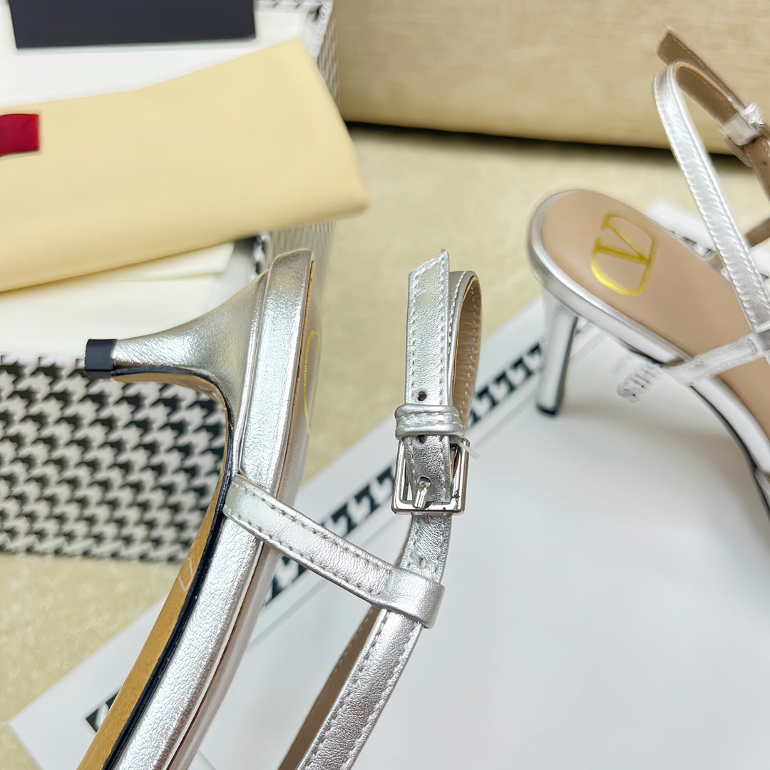 VLOGO SLINGBACK PUMP IN SILVER CALFSKIN LEATHER