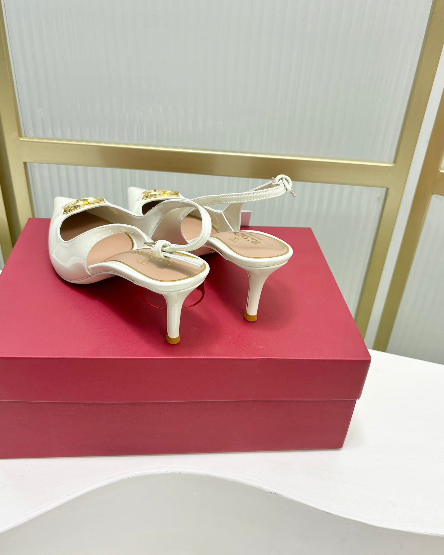 Vlogo The Bold Edition Slingback Pumps 60mm White Glossy Cowhide 843653