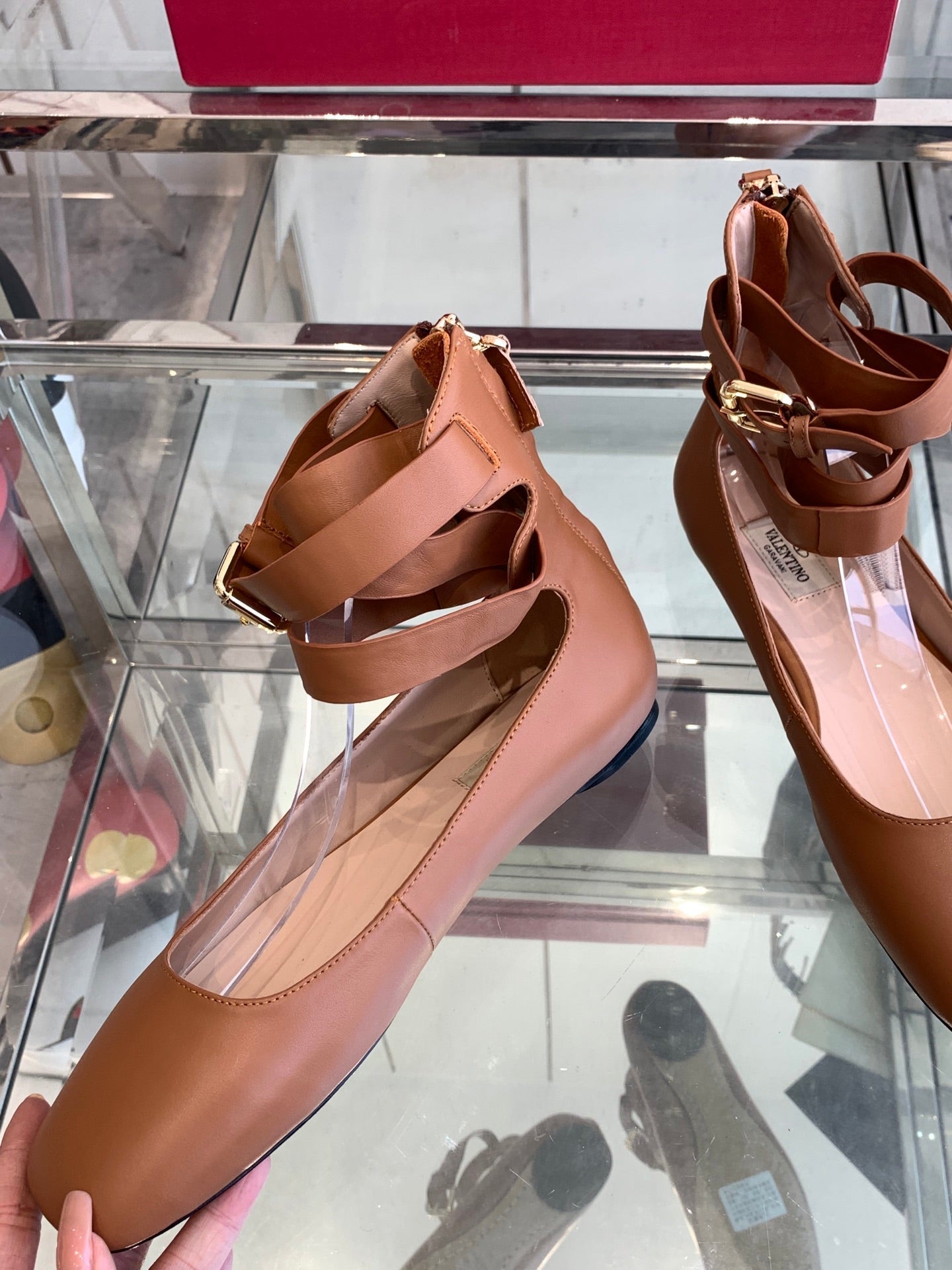 VT 25 Ballerina Ballet Gladiator Flats Brown Cowhide 292361