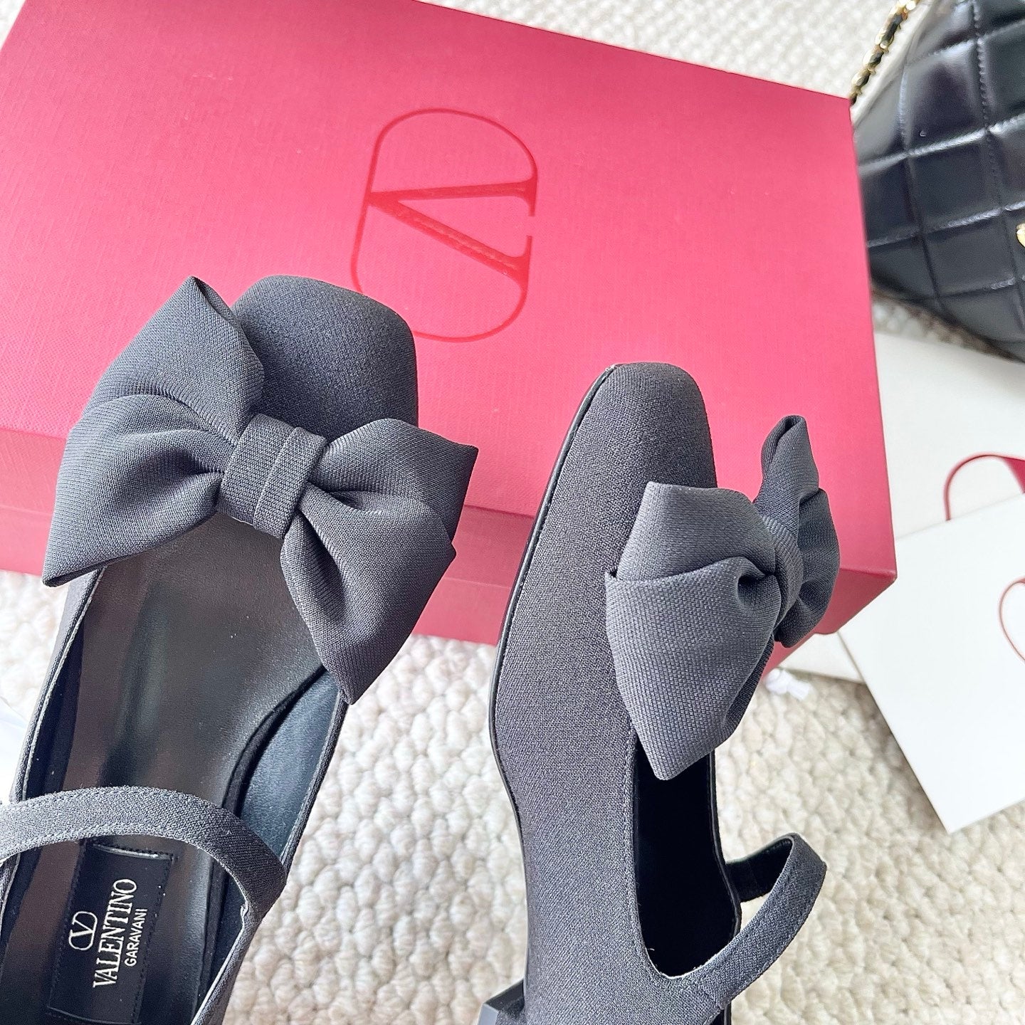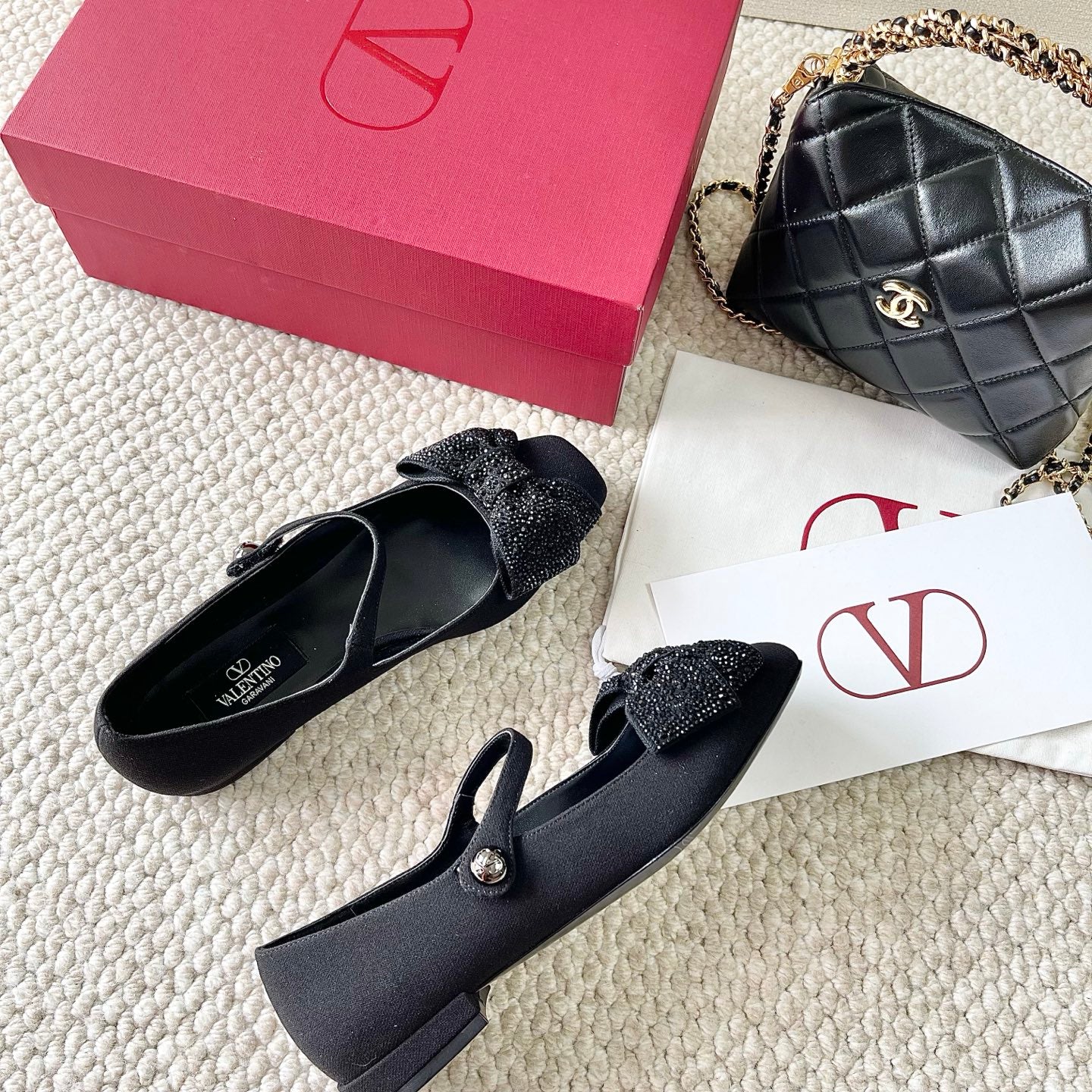 VT 25 Bow Diamond Marry Jane Flat Black Silk