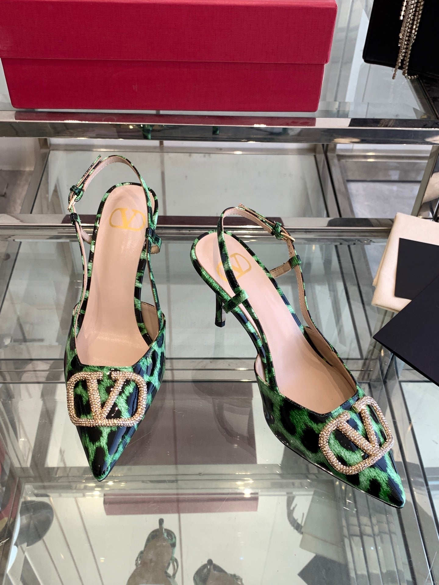 VT 25 High Heels Slingbacks Green Leopard Cowhide 292347