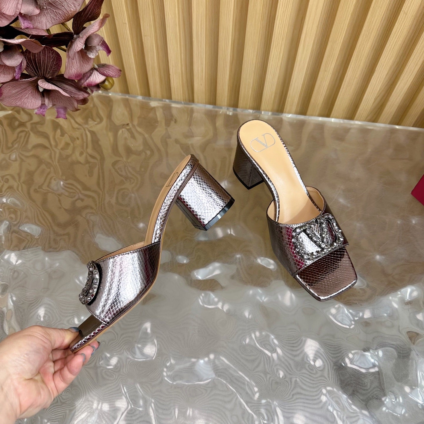 VT 25 Vlogo Mule Pink Gold Snakeskin Leather
