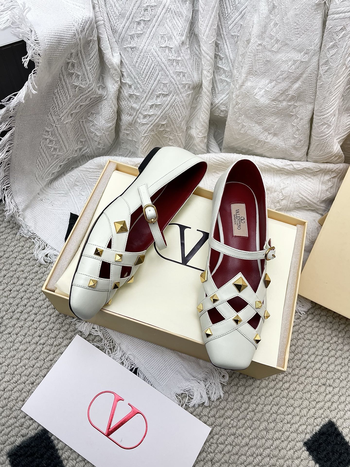 VT 26s Mary Jane Ballet Flats White Burgundy Lambskin 611367