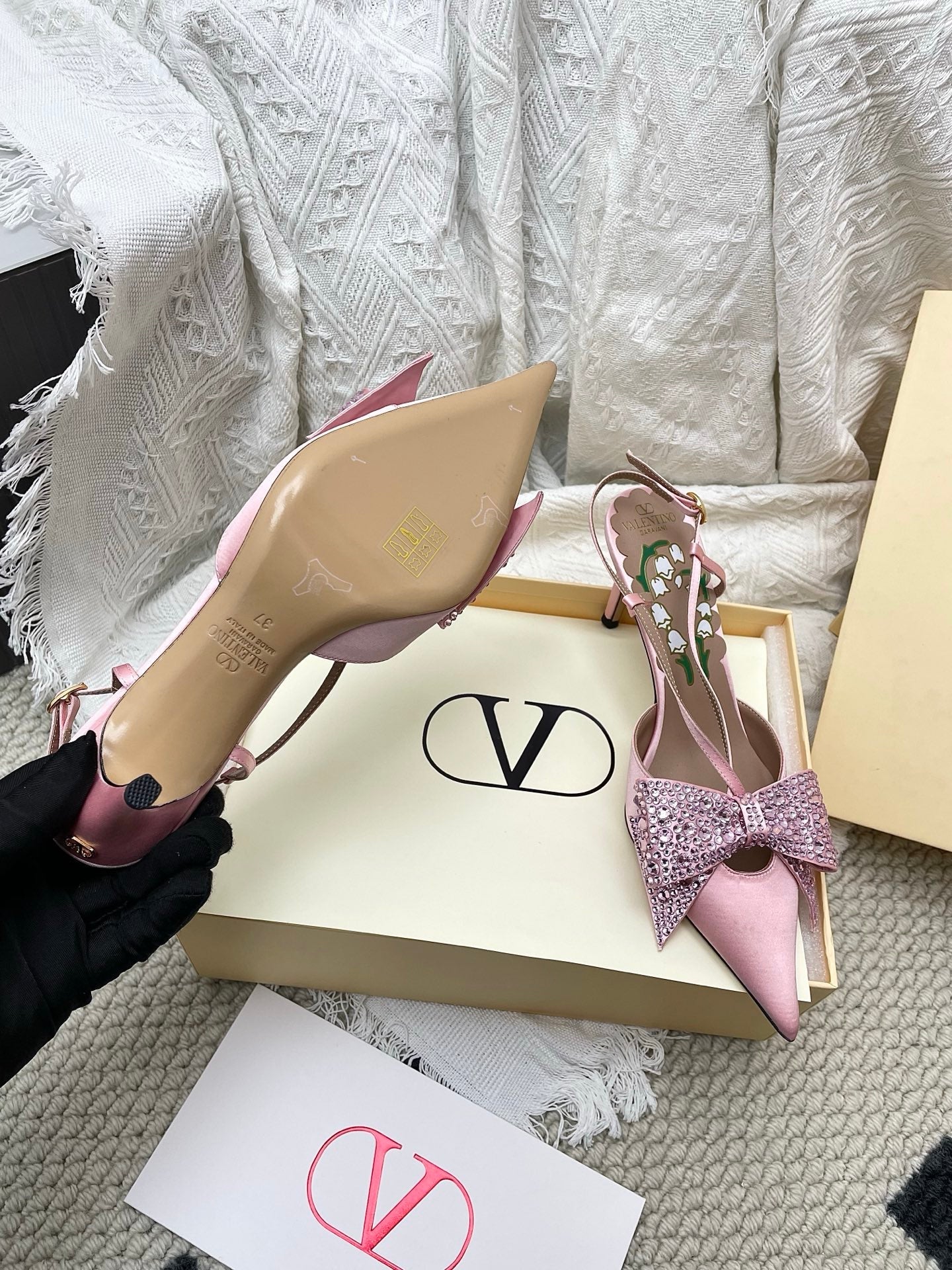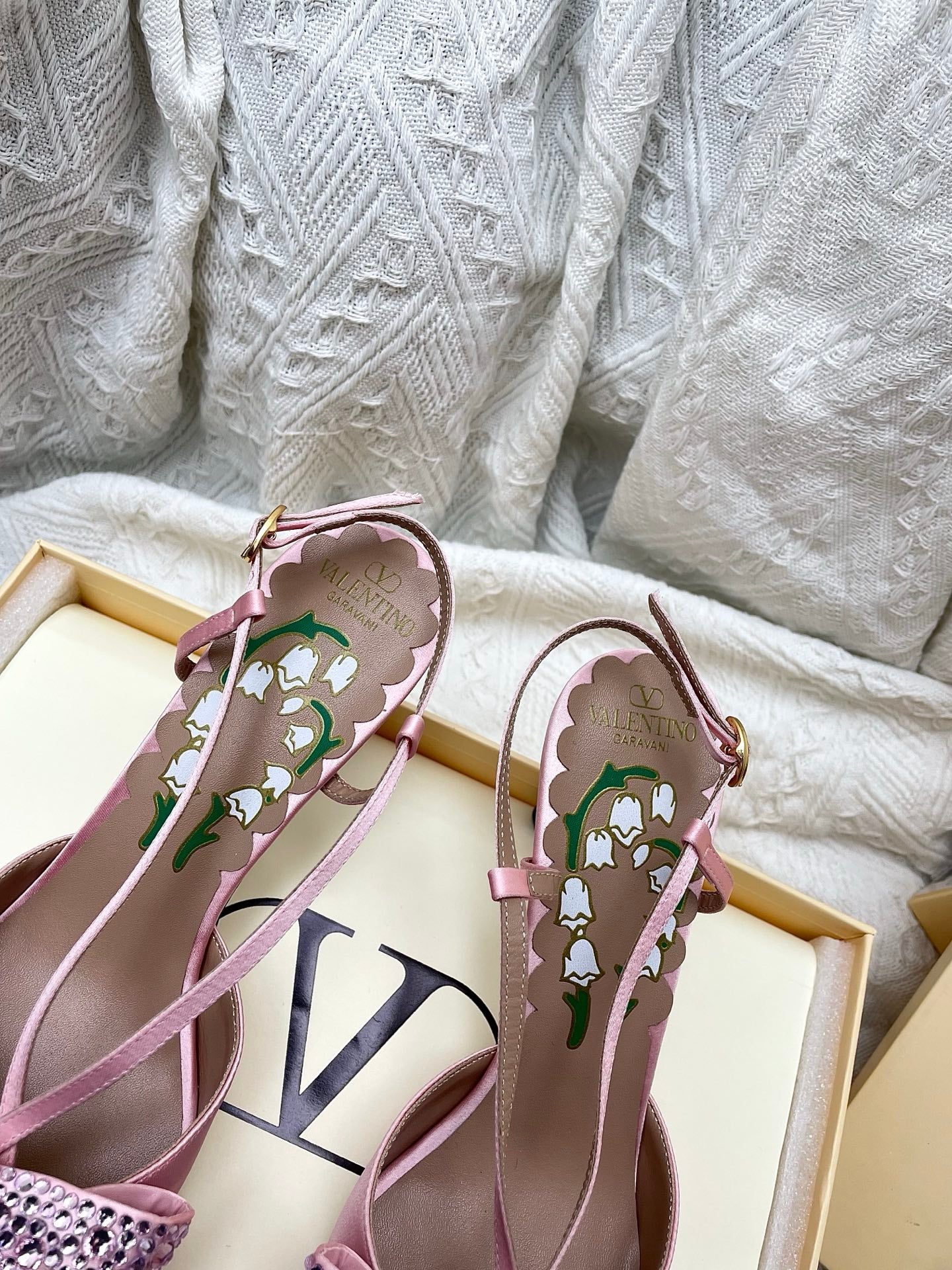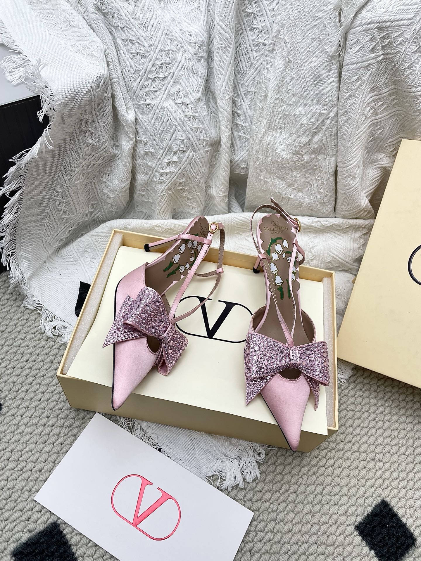 VT 26s Slingback 80 Light Pink Rhinestone Silk Sheepskin 611406
