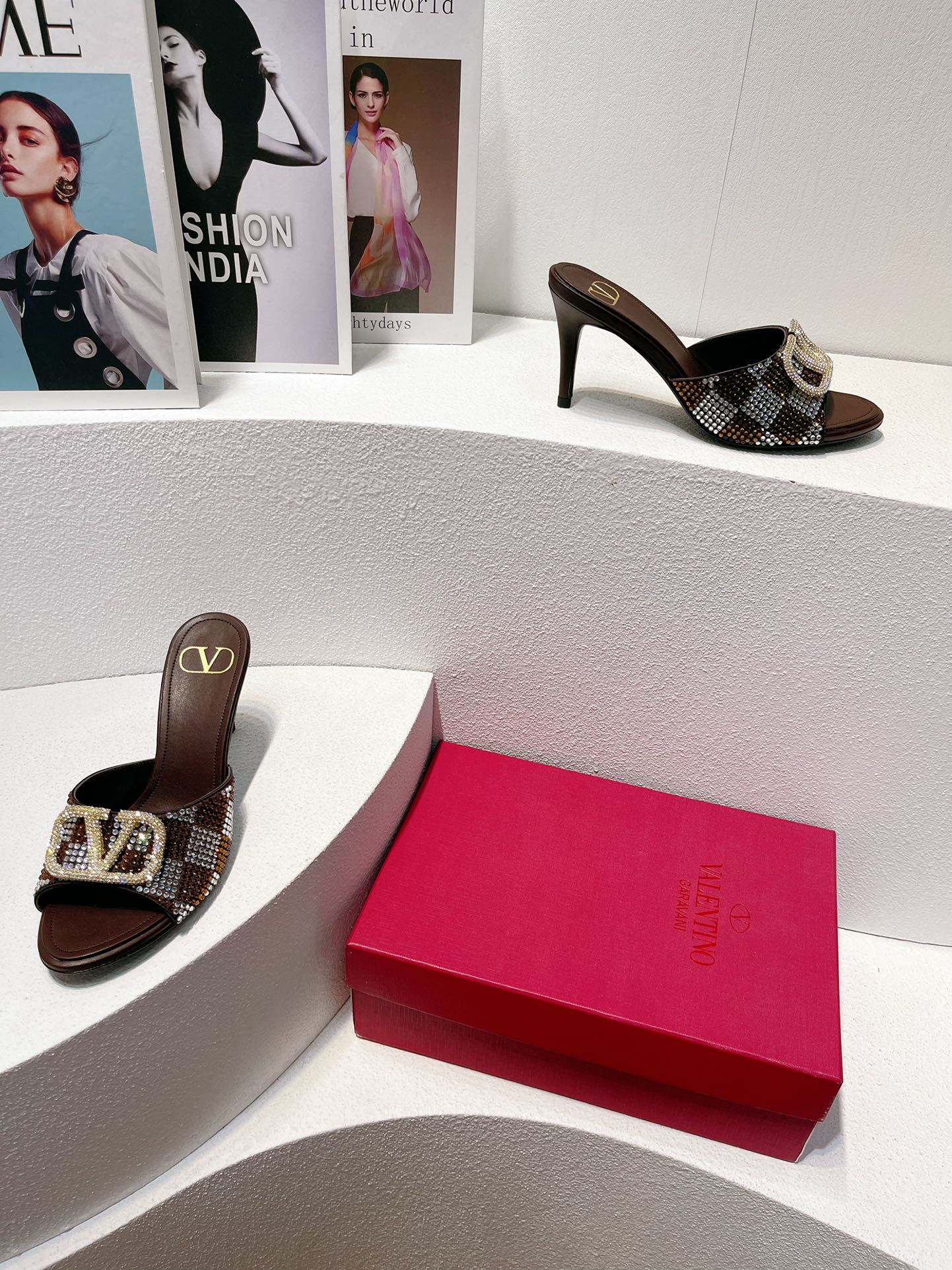 VT High Heeled Sandals Brown Sheepskin 292848