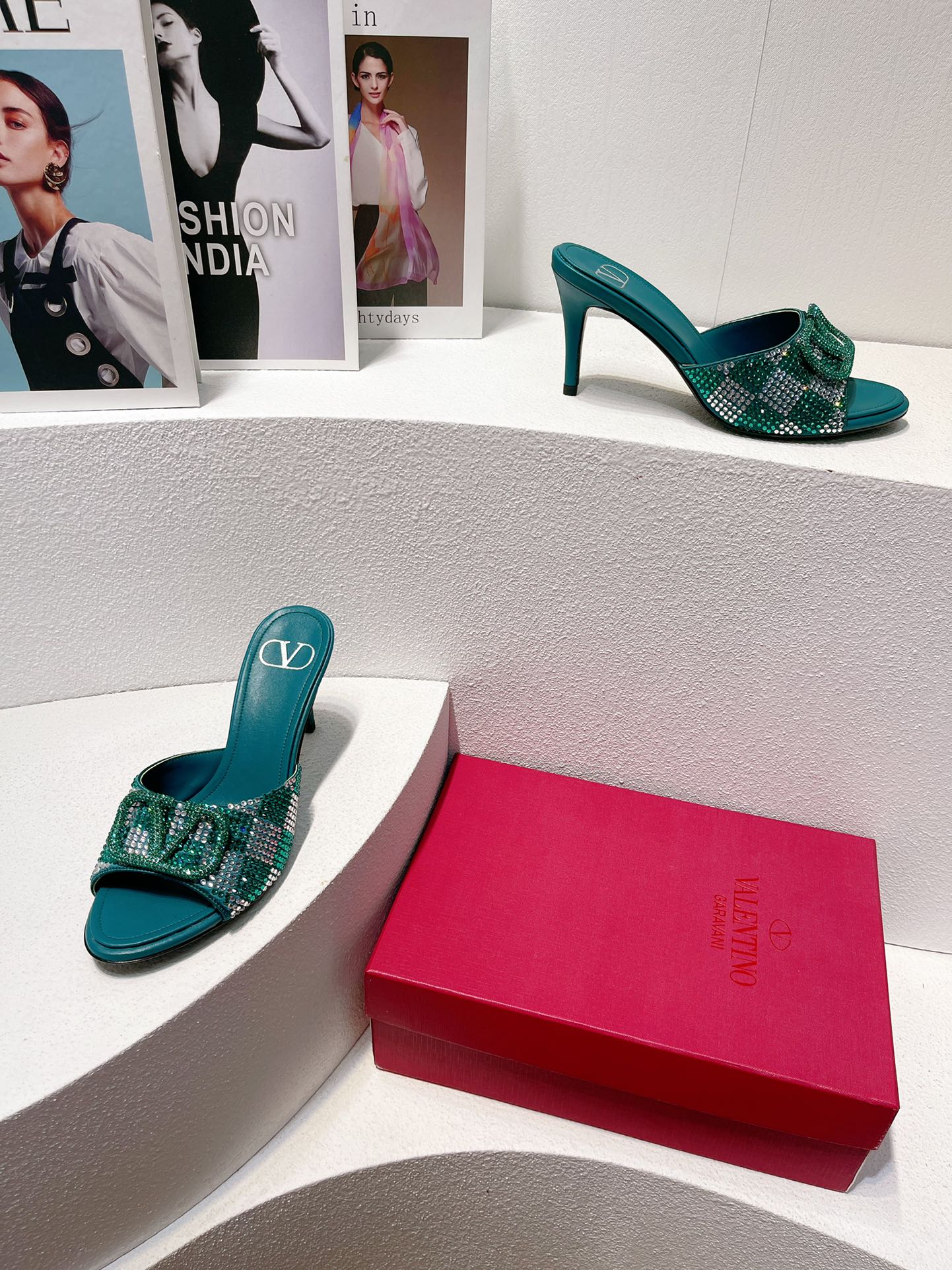 VT High Heeled Sandals Emerald Green Sheepskin 292850