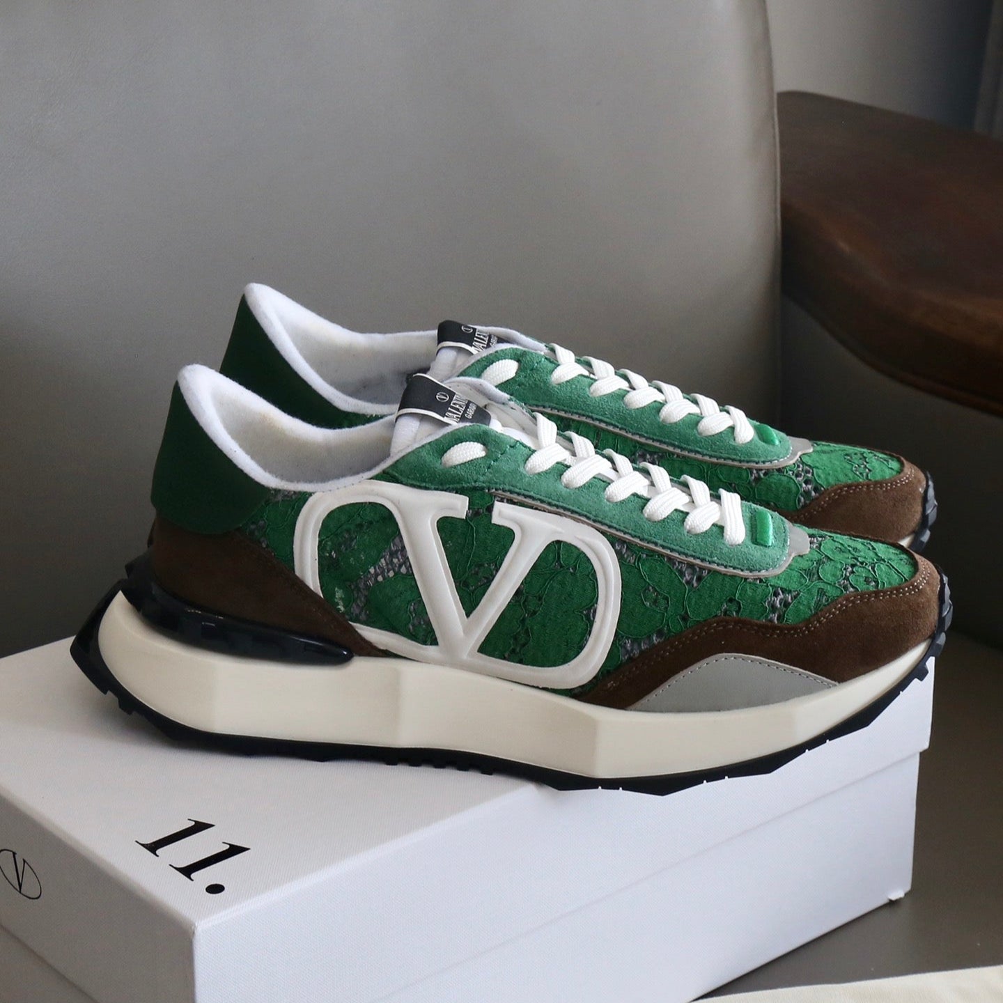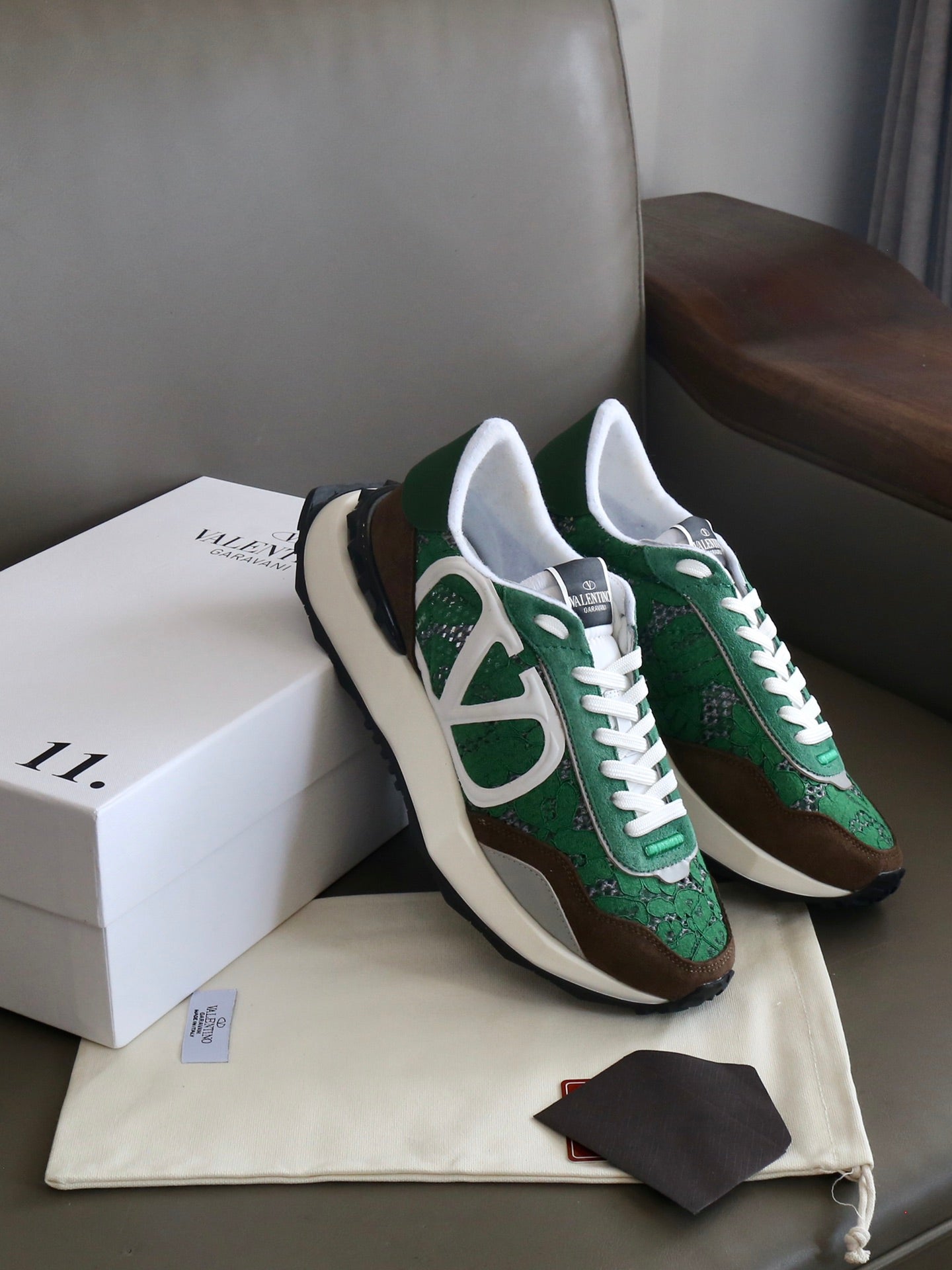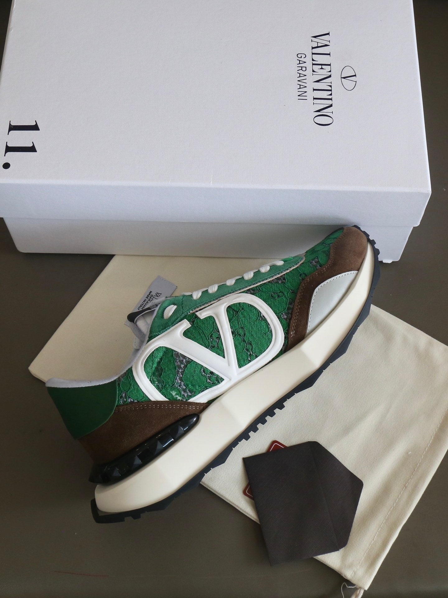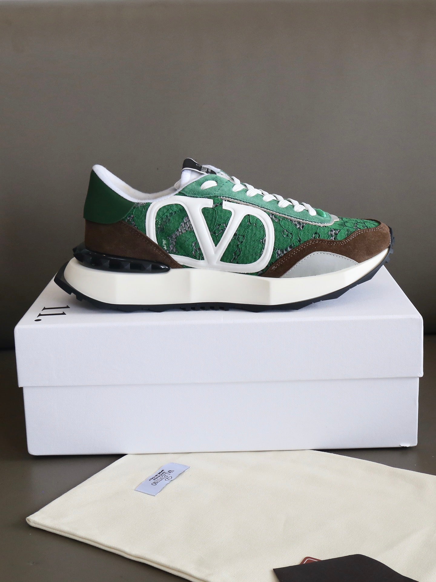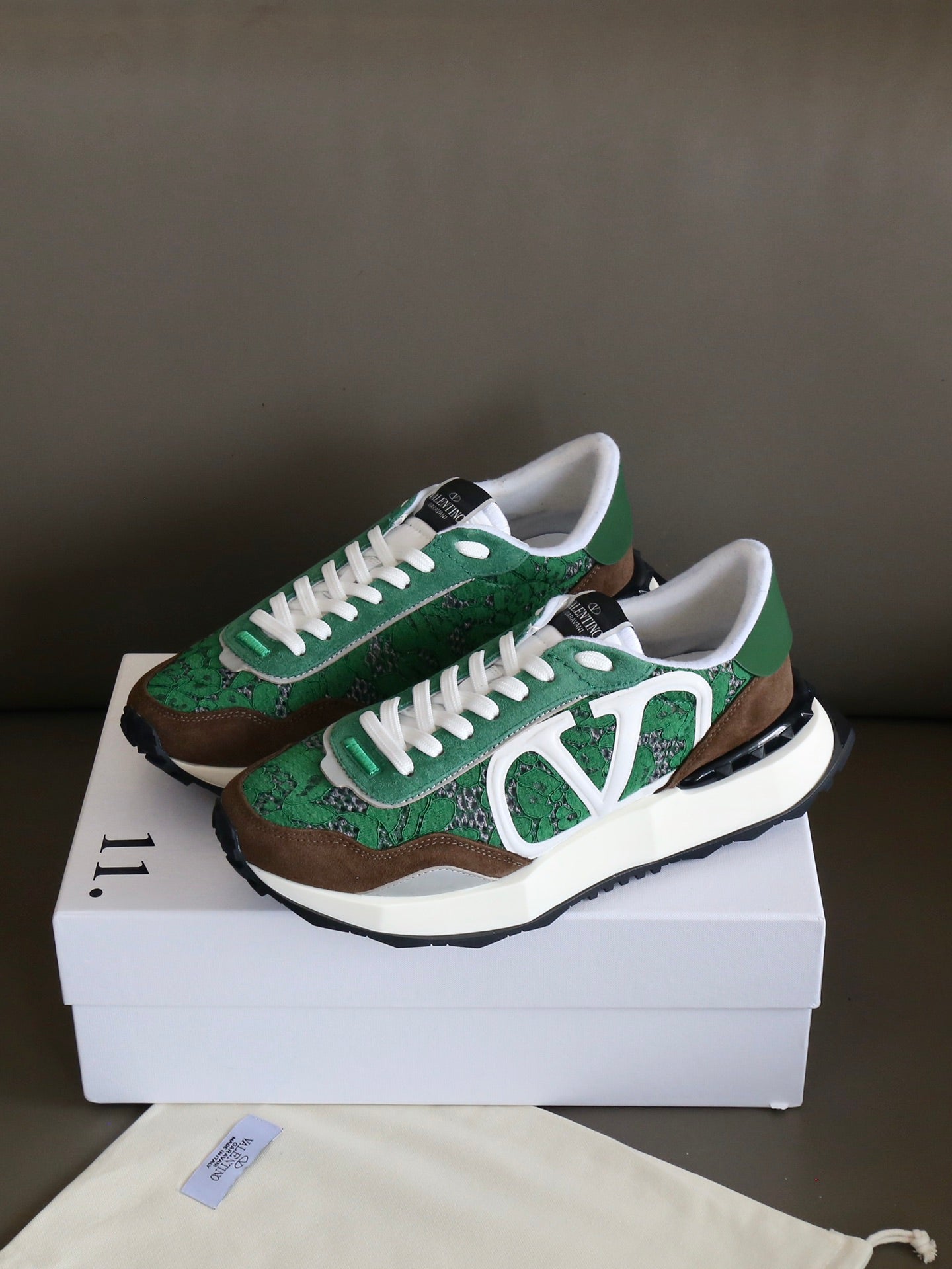 VT Lace Sneaker Green Brown Suede Leather