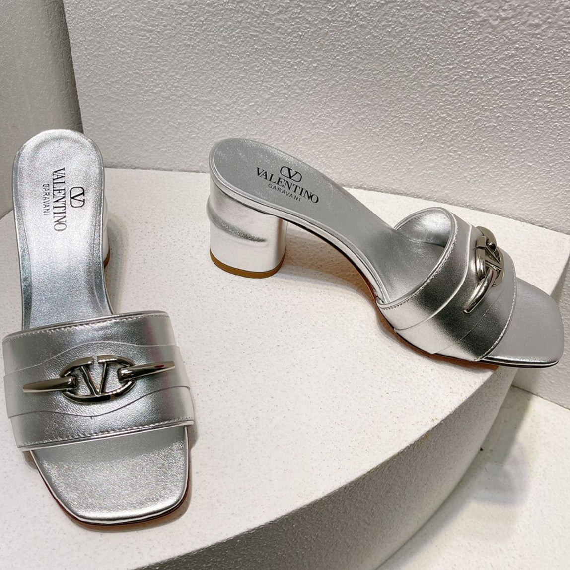 VT Leather Mules Silver Cowhide 292874