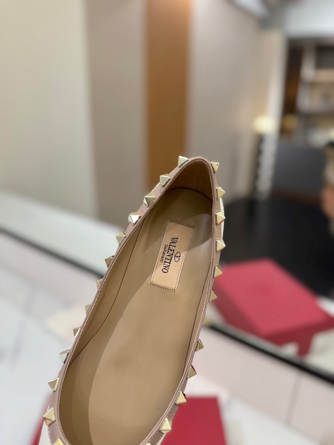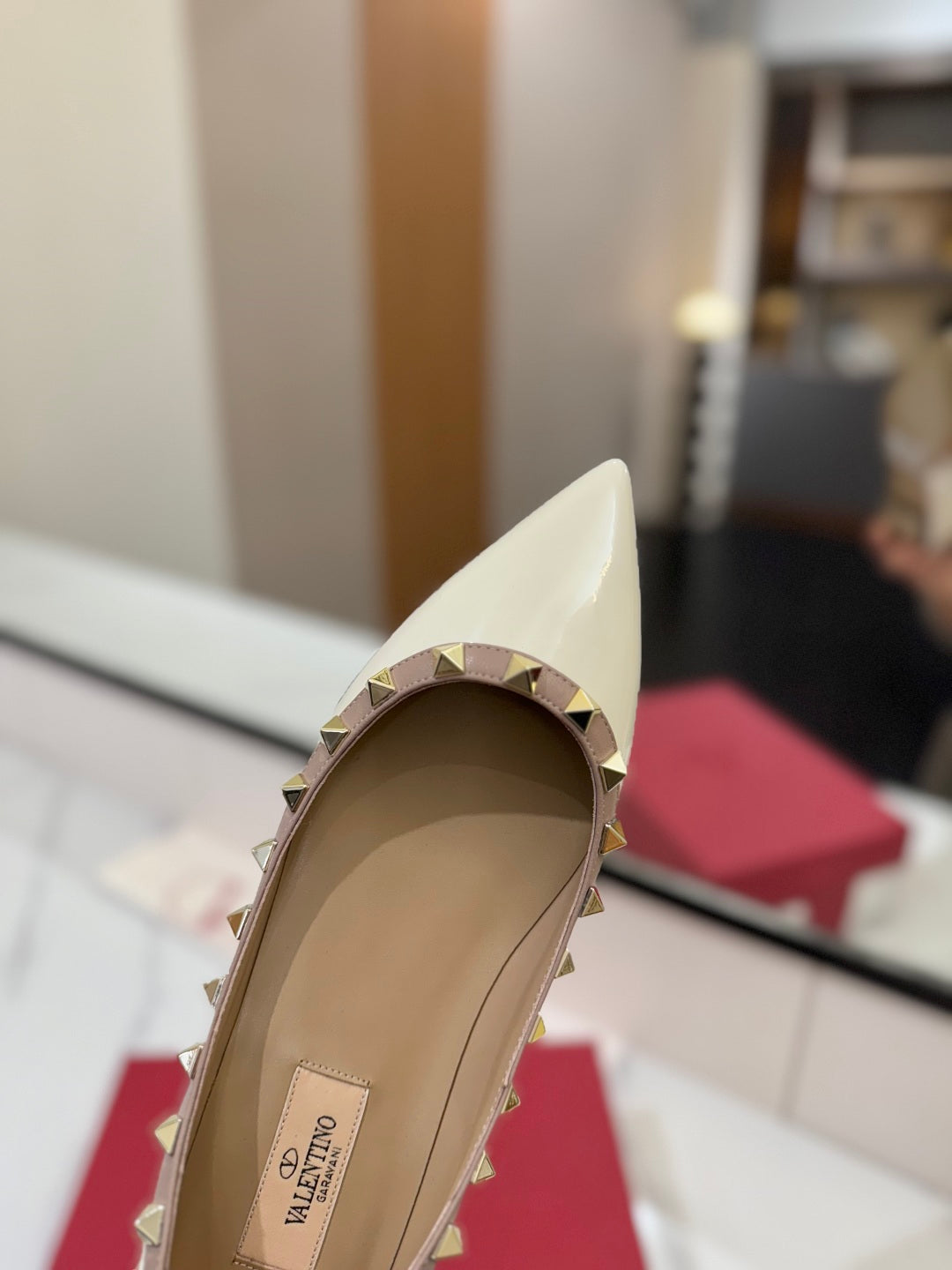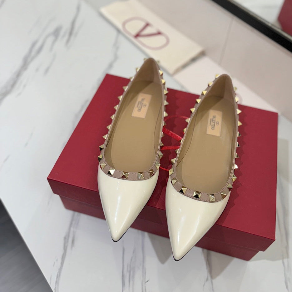 VT Rockstud Ballet Flat White Goatskin