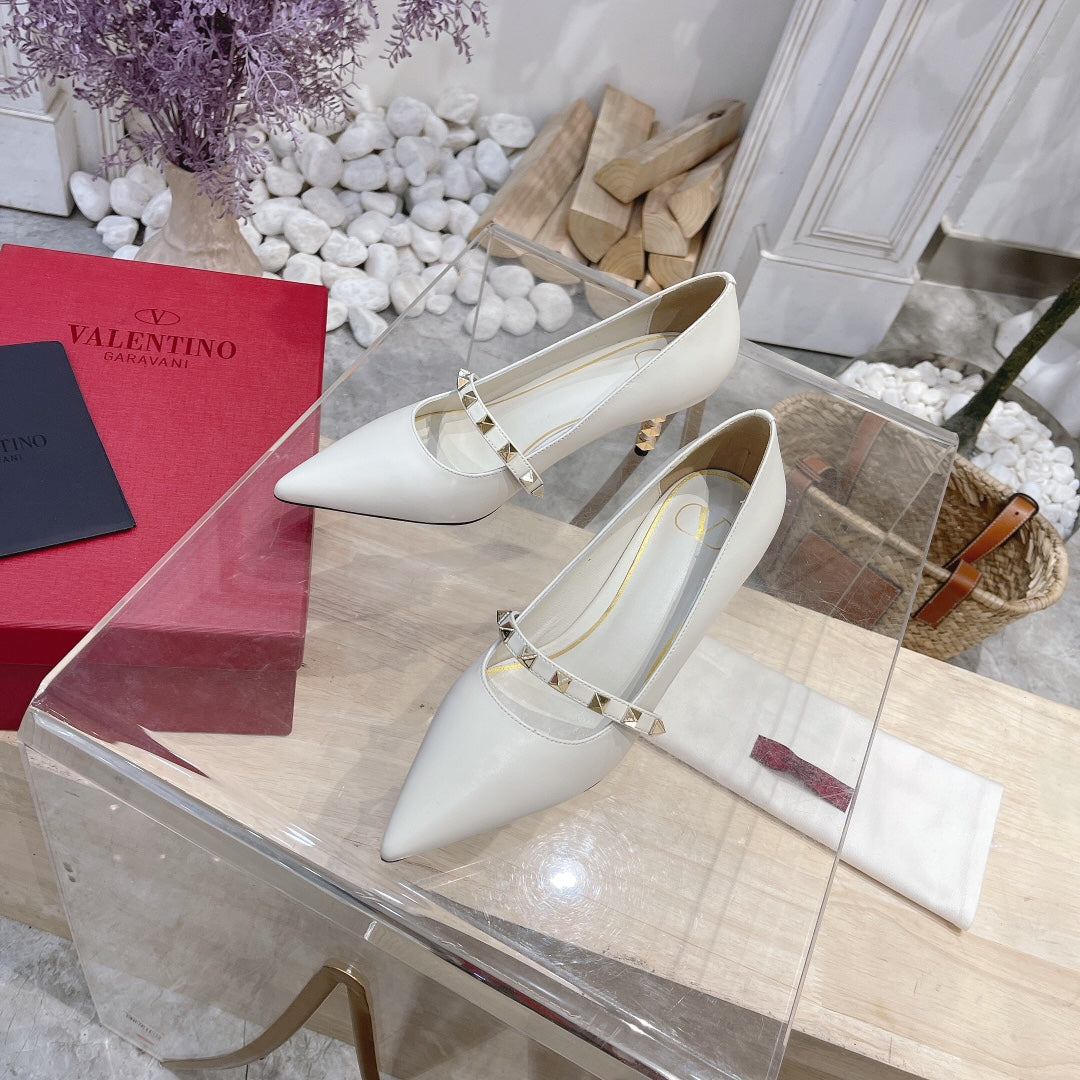 VT Rockstud Pumps White Sheepskin Leather