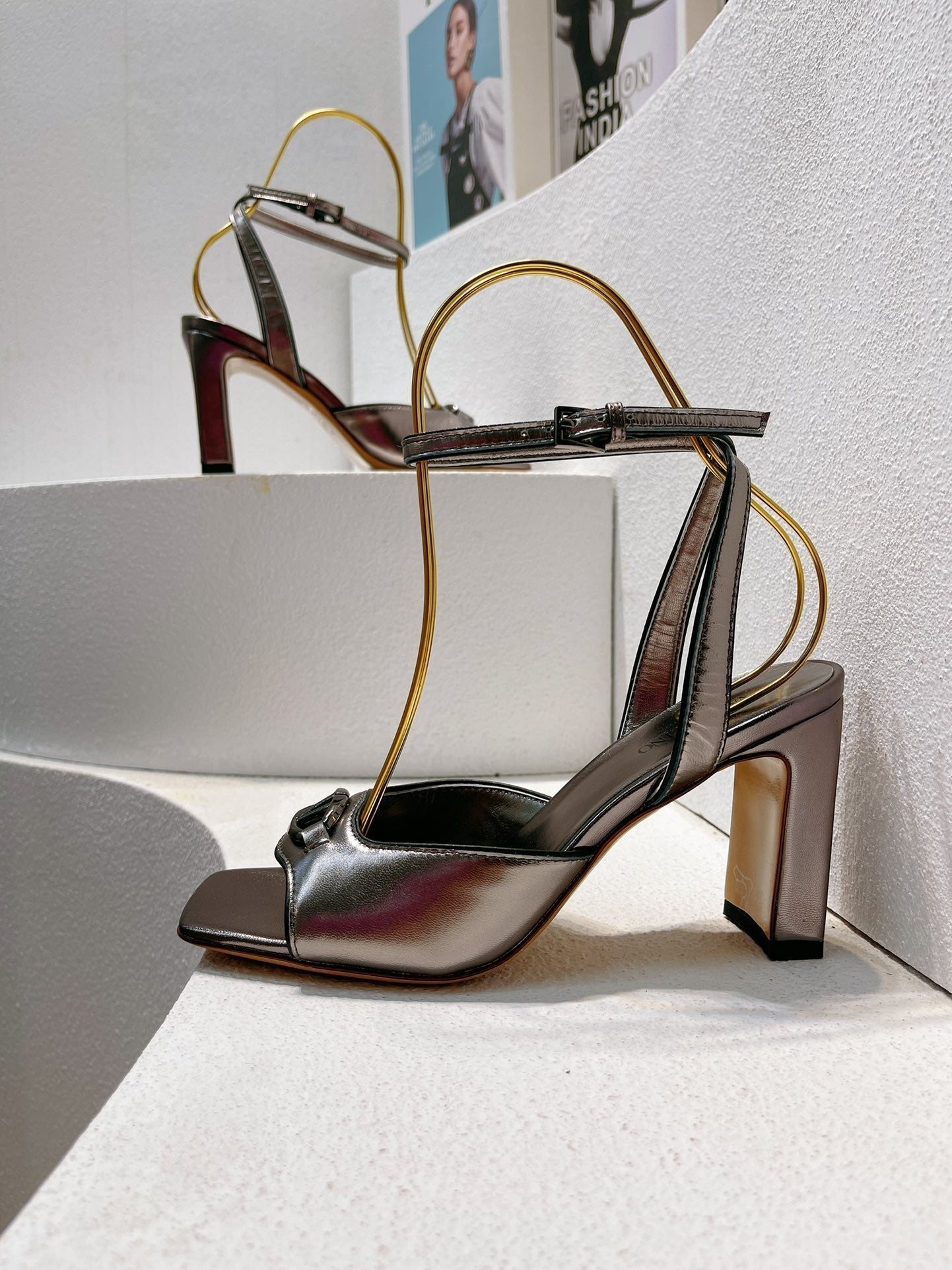 VT Sandals Heels 70mm Gray Cowhide 292786