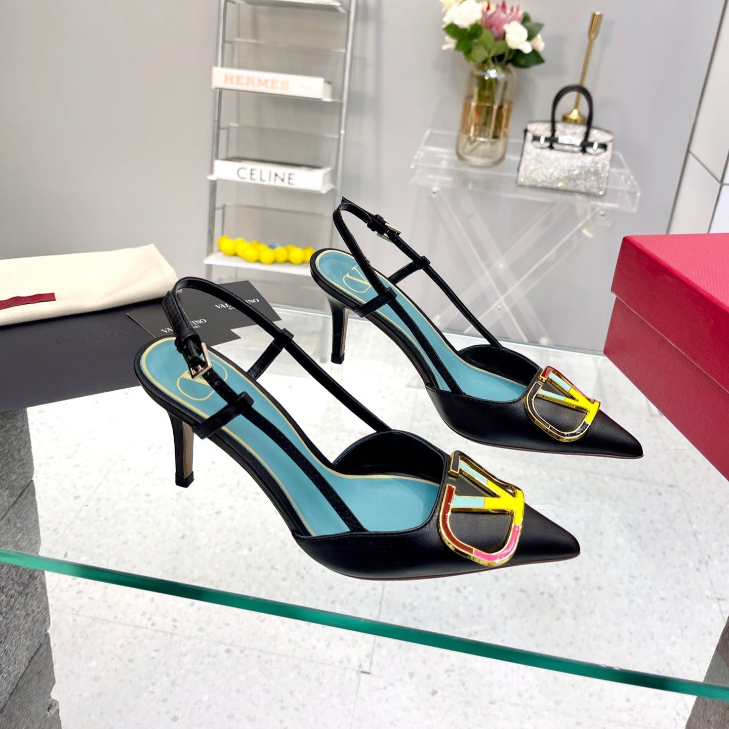 VT Vlogo Signature 75mm Black Slingback Sheepskin