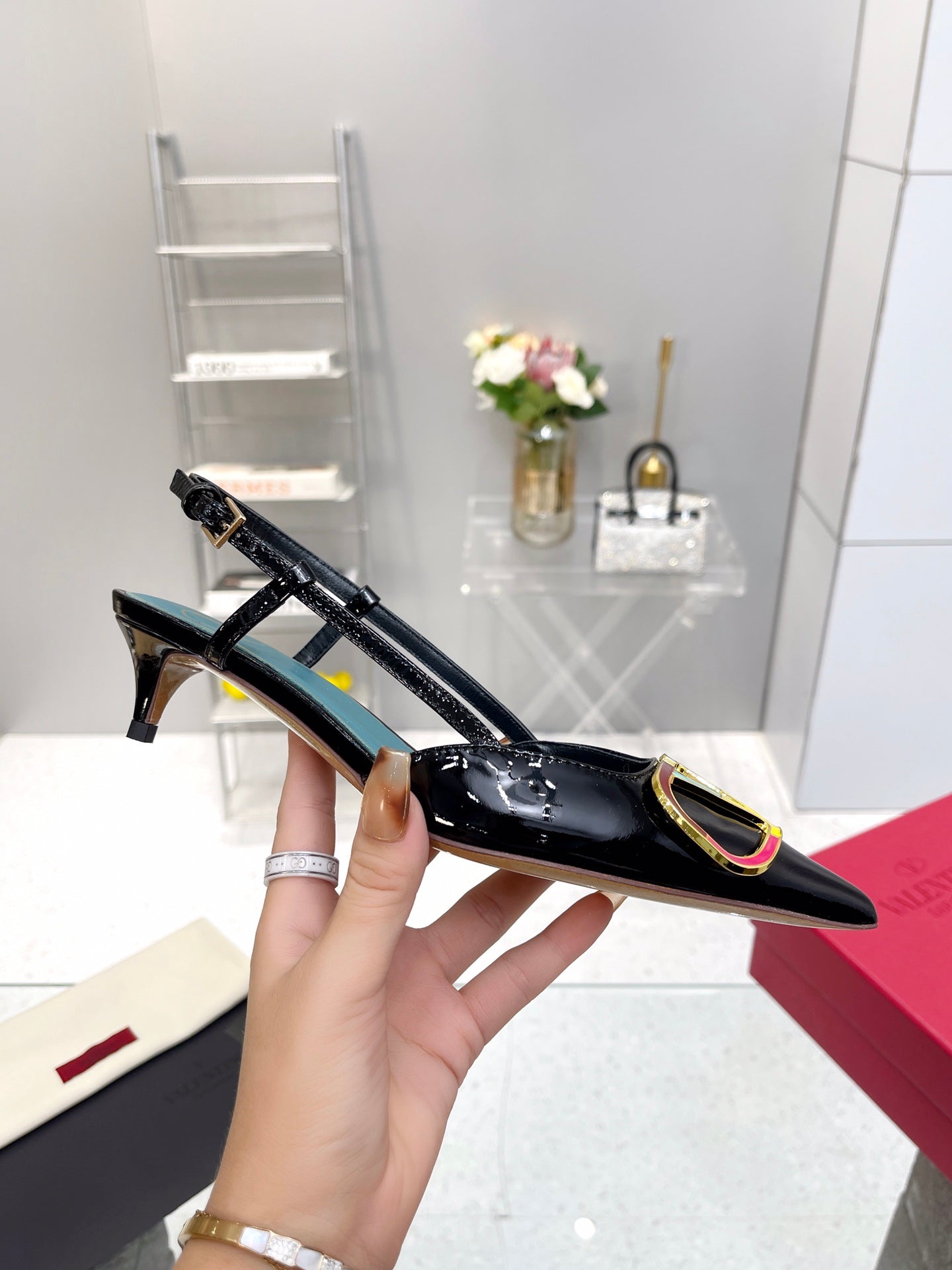 VT Vlogo Signature Black Slingback Patent Leather