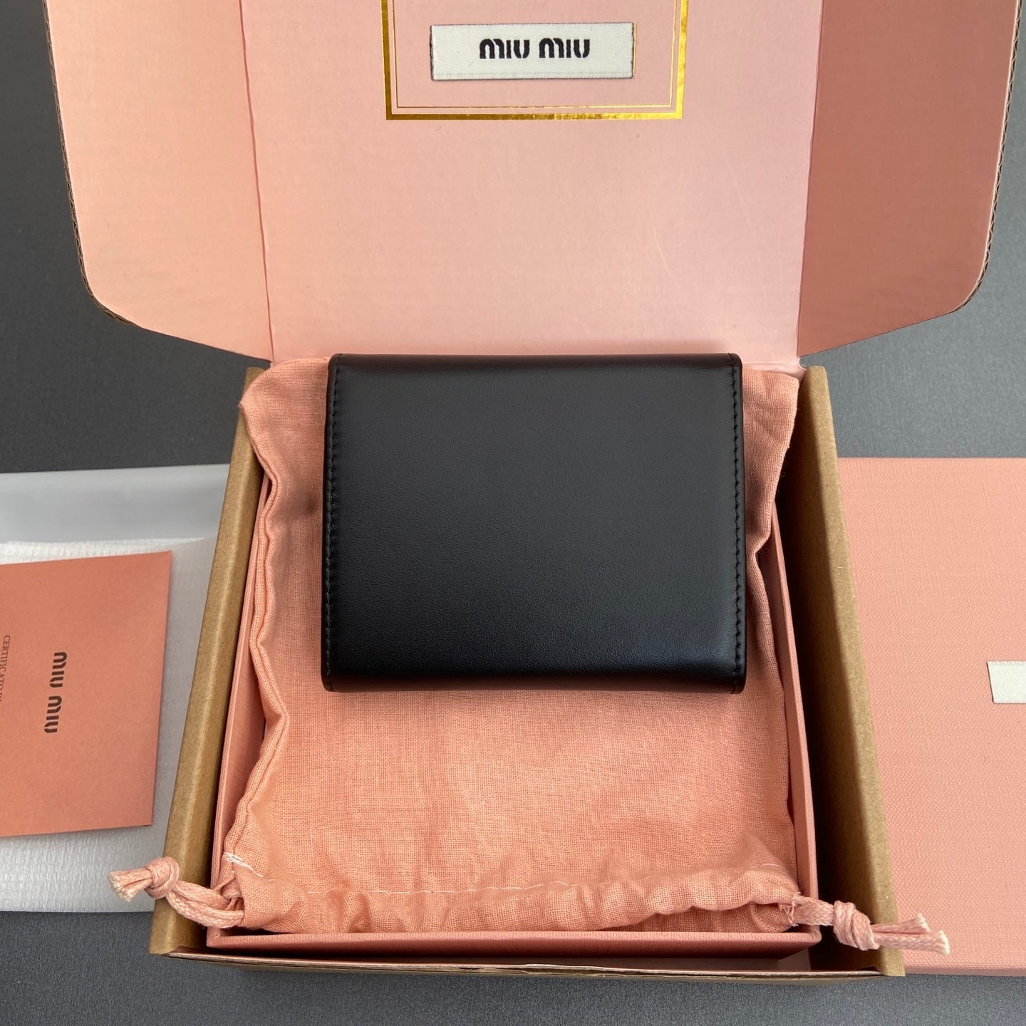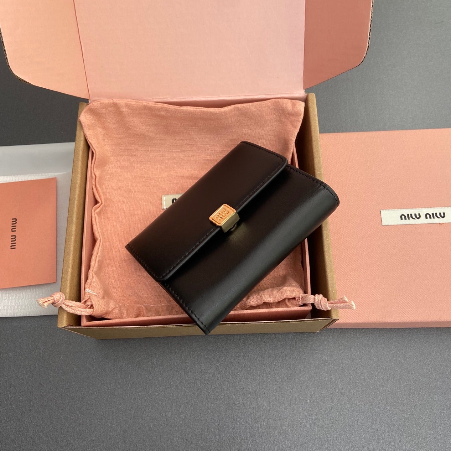 WALLET 12 IN BLACK SMOOTH CALFSKIN GOLD HARDWARE