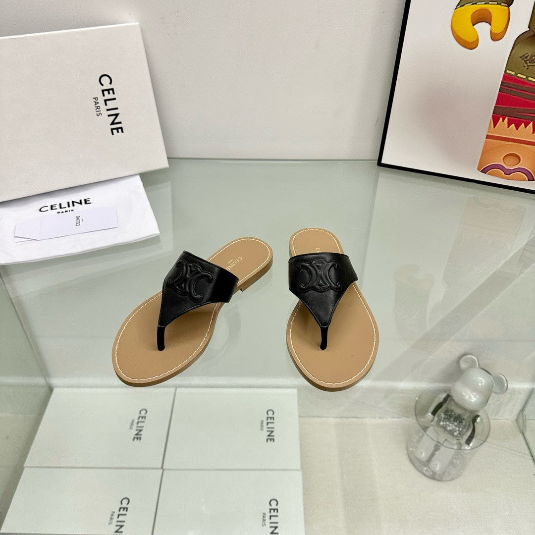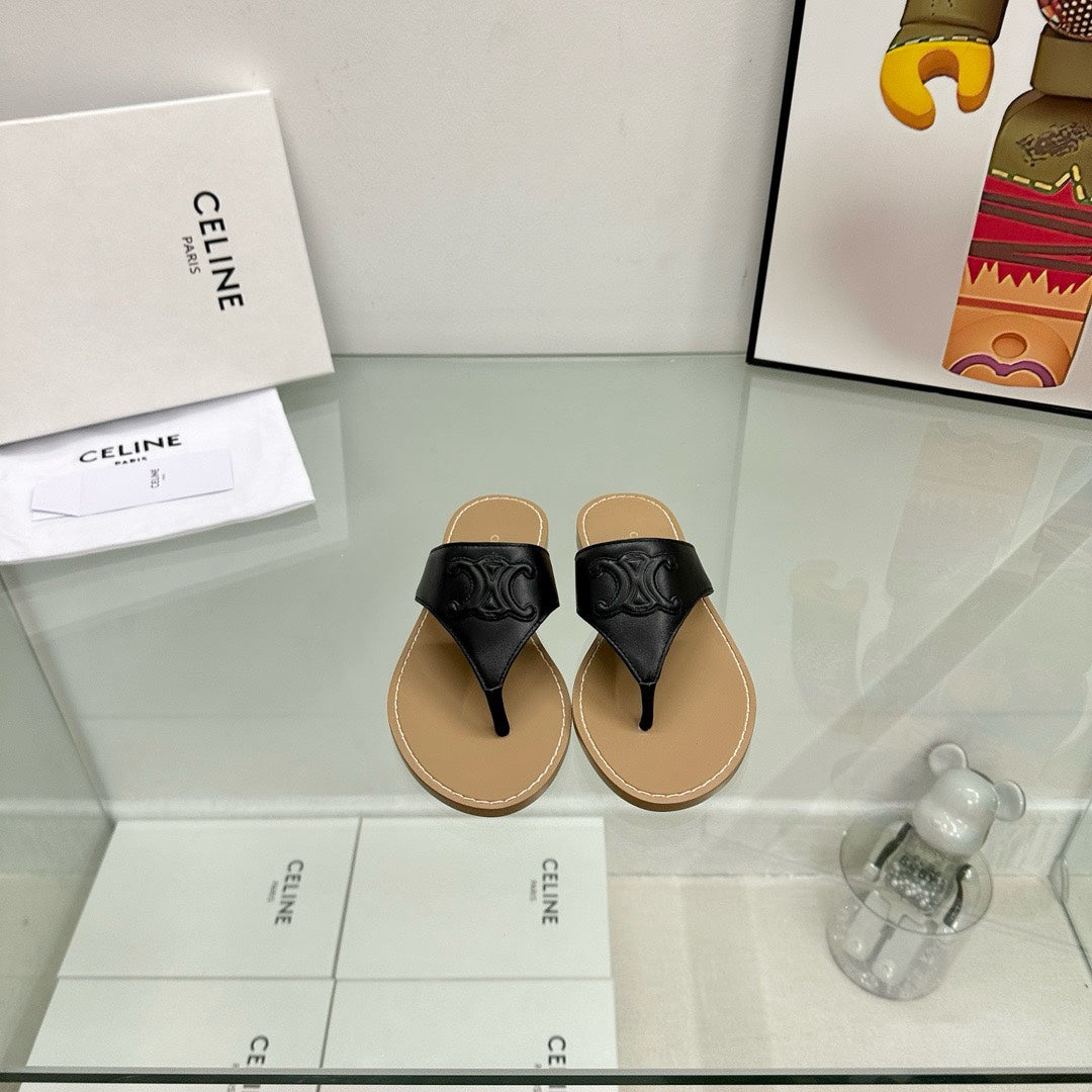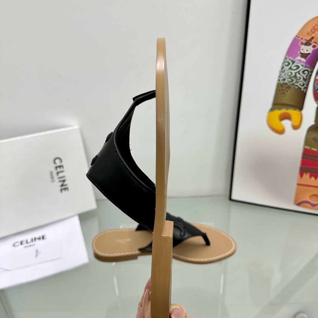 WOMEN TRIOMPHE FLAT THONG IN CALFSKIN BLACK