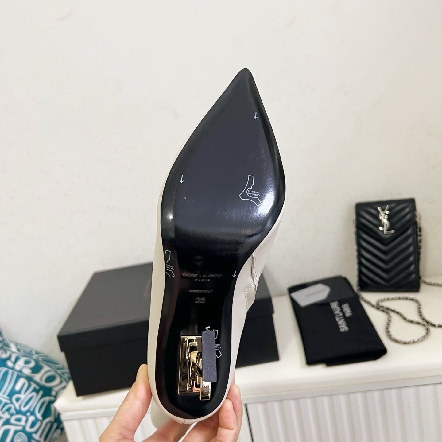 YSL 2025 Logo Metal Heel Ankle Boot White Cowhide 575003