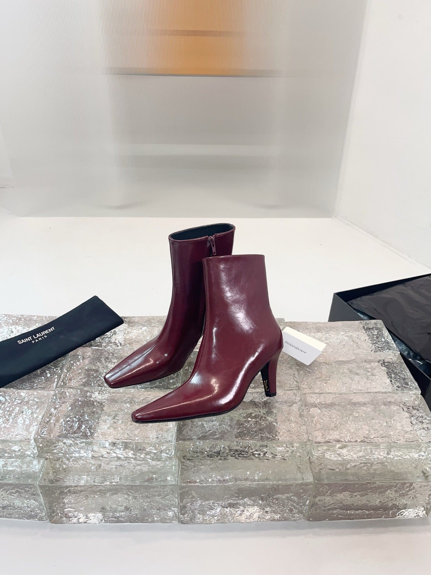 YSL 25 High-heeled Boot Burgundy Cowhide 522266