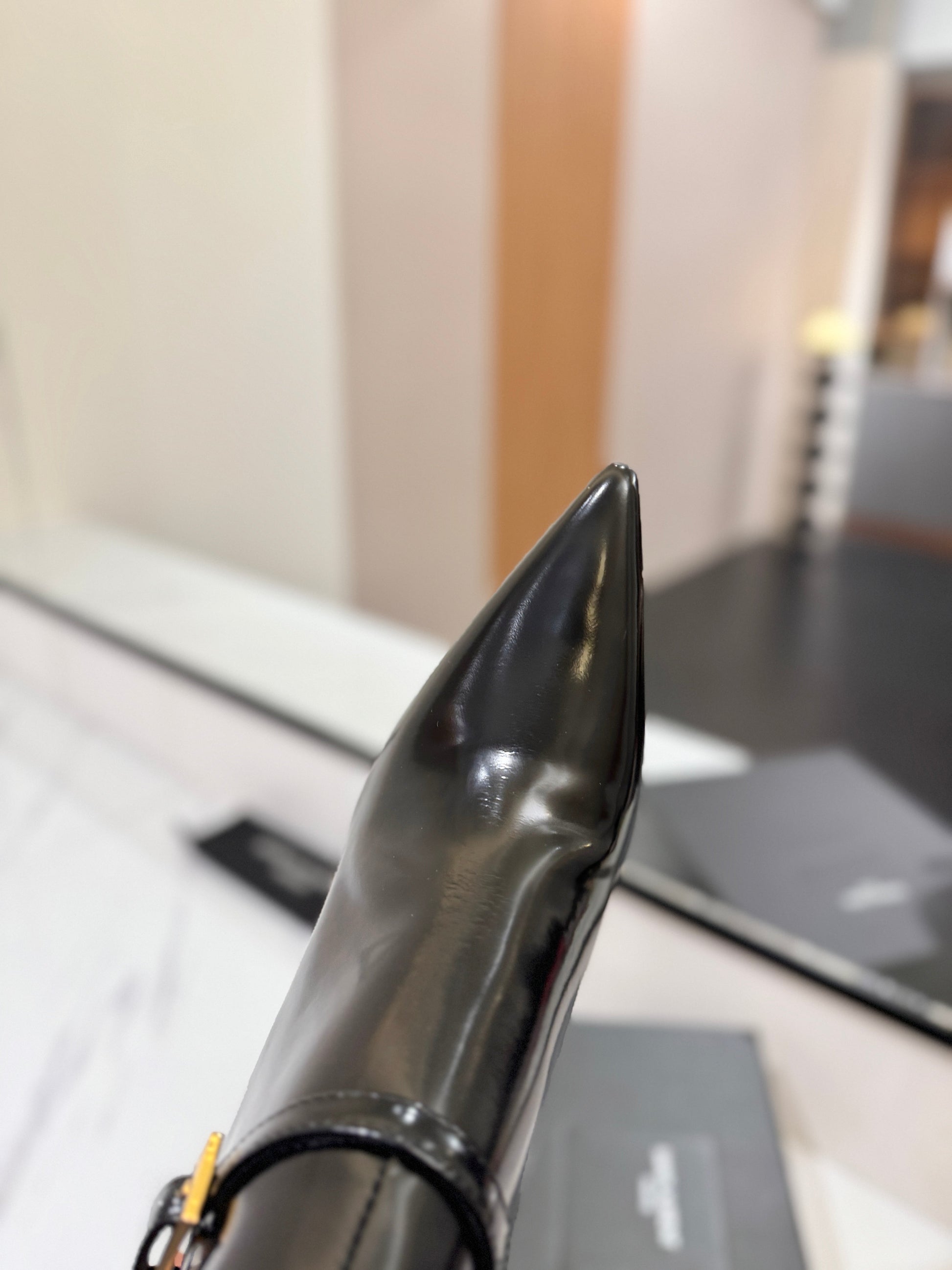 YSL 25 Metal Stiletto Martin Boots Black Gold Cowhide 520779