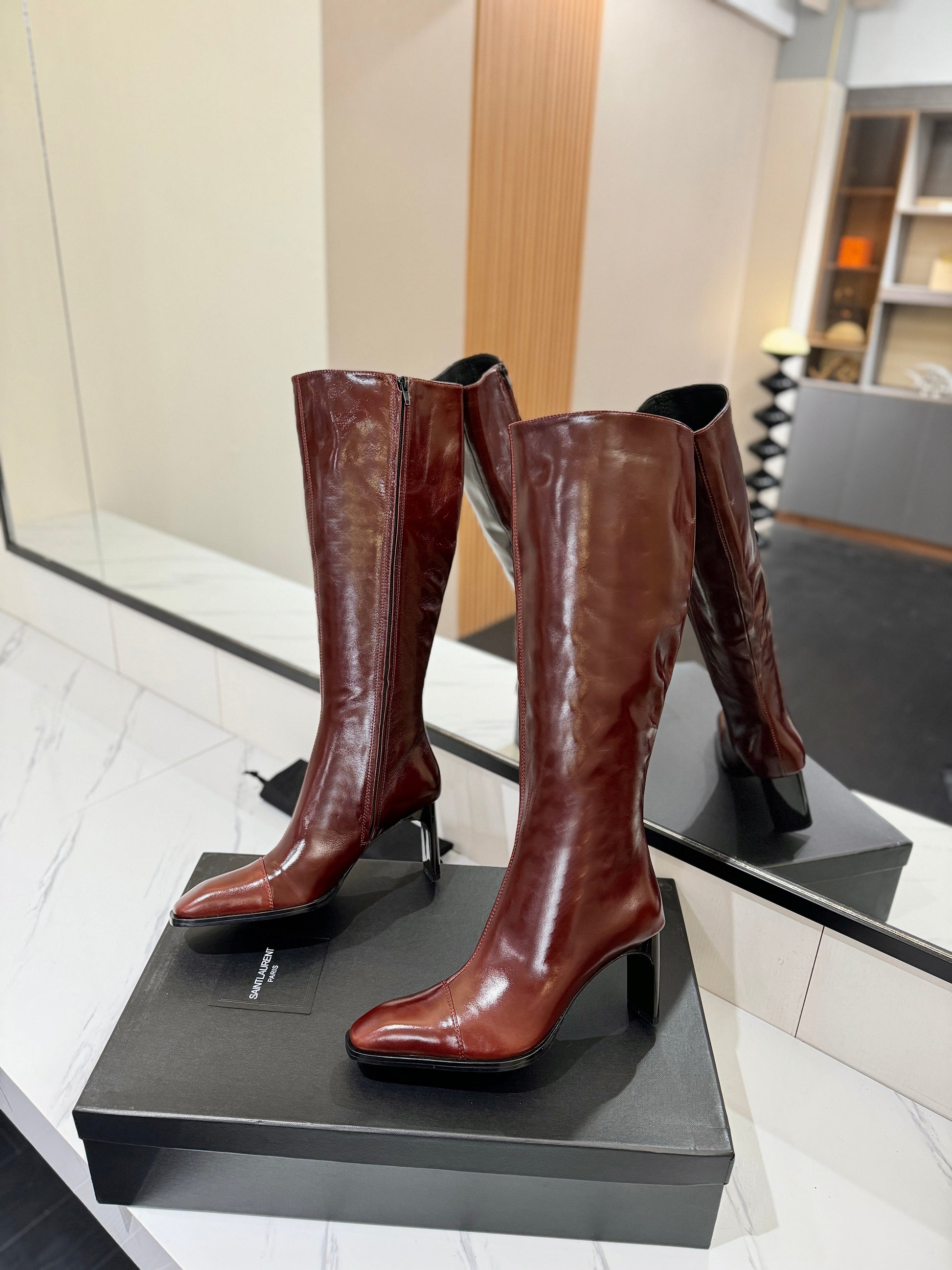 YSL 25 Zipper Sleeve Boot Burgundy Cowhide 520790