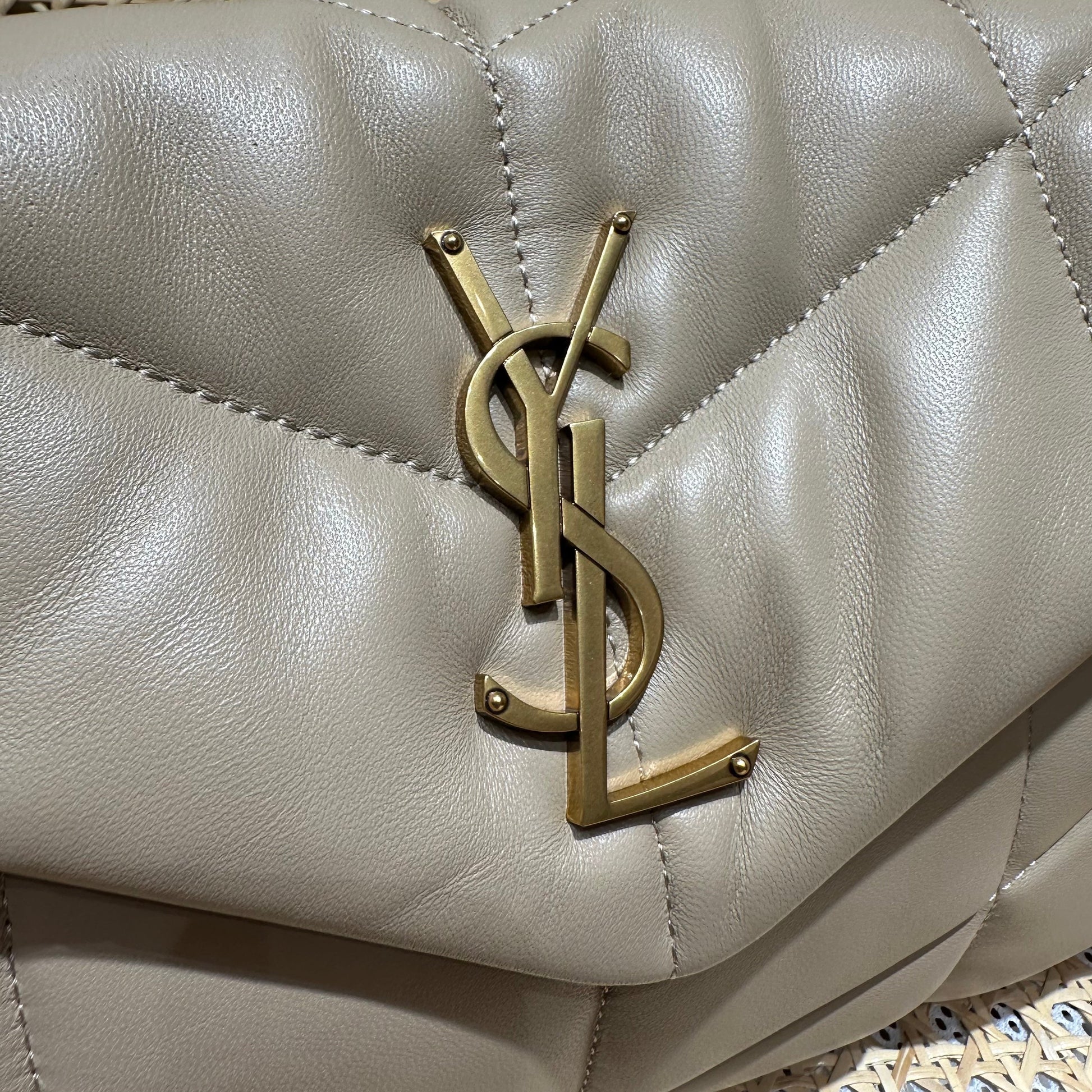 YSL Loulou Puffer Quilted Bag Beige Gold Lambskin 338806