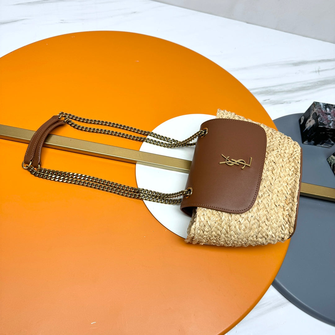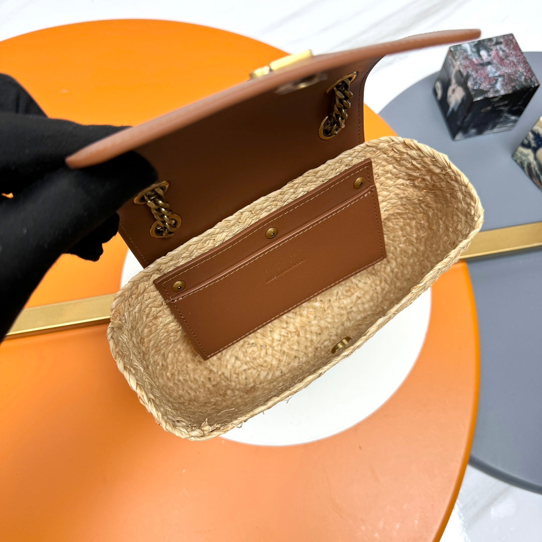 YSL SMALL 23CM MANON BEIGE RAFFIA TAN CALFSKIN